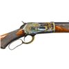 ACTION RIFLE. Cal. 38-56. S# 27586. Bbl. 26" octagon. Equipped with rare Rocky Mountain front sight and semi Buckhorn rear for sight by Freund, Cheyenne, WY. Full length mag. Beautifully case colored receiver, lever and hammer with blued breach bolt and trigger. Forearm and pistol grip stock with ebony grip insert of XXX black walnut. Features include style “H” factory checkering and hard rubber shotgun buttplate. Inside of lower tang marked with assembly number “590” followed by “SRB” and wood grade marking “XXX”. Top tang channel of stock has matching assembly number. Cody records show that it was received in warehouse on August 10, 1889 and shipped the same day to order #24581. CONDITION: very fine. Bbl. and mag tube retain over 98% original blue showing very faint edge wear and tiny marks. Action has brilliant case coloring showing slight wear and very small spots along edges. Very good original wood finish and checkering show only a few scattered light marks. Bright near excellent bore. Crisp mechanics, bolt face shows little or no use. PROVENANCE: The Wes Adams collection. Bbl. edges show small handling. Left bbl. flat shows spotted light freckling with handling marks 8" from the muzzle & at the end of bbl. as depicted in the 2013 photography. (01-22294/DS). ANTIQUE. $40,000-60,000.