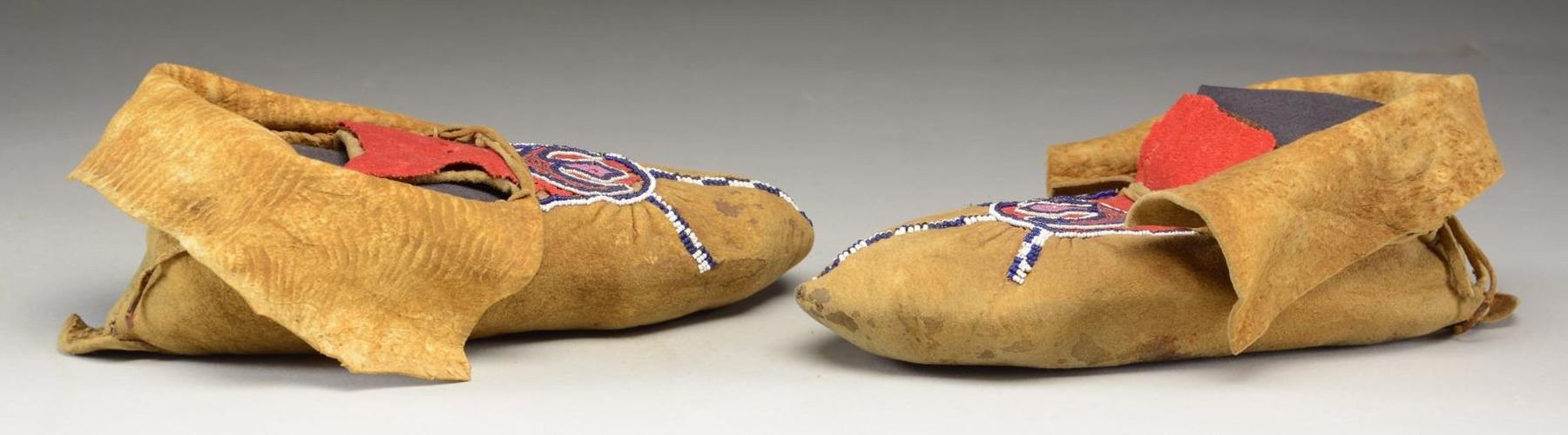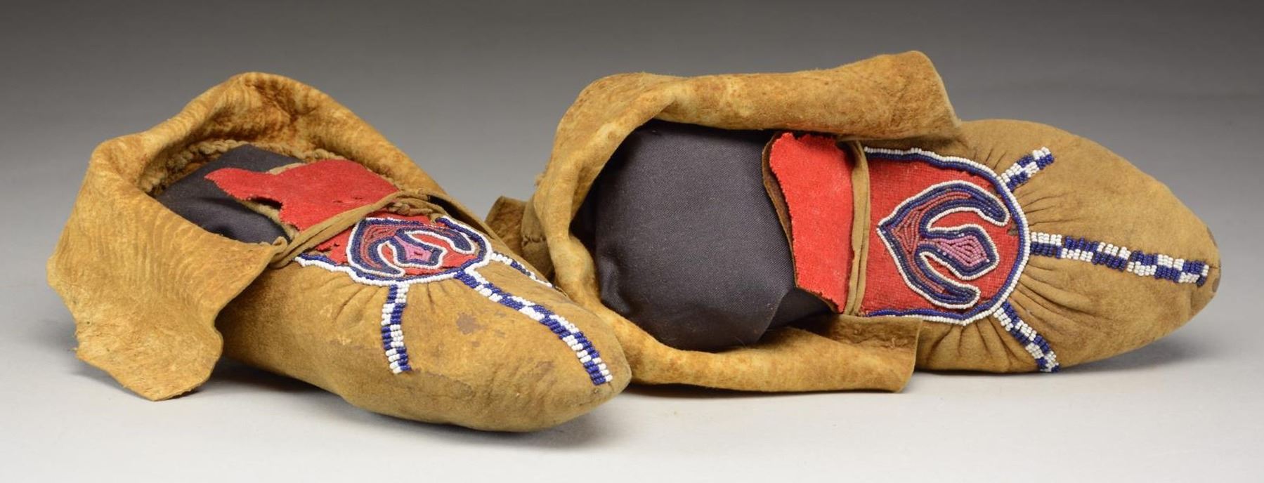 PAIR GREAT LAKES BEADED NATIVE AMERICAN MOCCASINS.