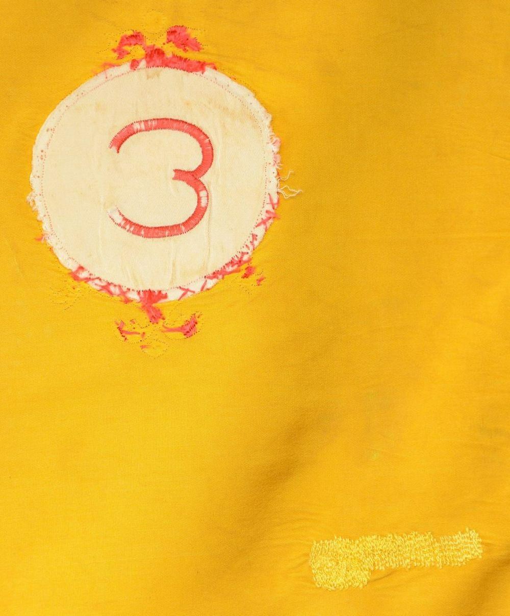 BATTALIONS, VIETNAM ERA, “VICTORY OR DEATH”. Both 3' x 4' double applique embroidered on yellow field, yellow fringe, historic color of cavalry where tank and armor originated, Philadelphia depot labels, undated but circa 1950s based on inspector. Both flags virtually identical other than the Battalion marking “3” & “4”. The 32nd Armored Regiment was activated 15 April, 1941 at Camp Beauregard, Louisiana as the 2nd Armored Regiment and assigned to the 3rd Armored Division. The unit was Redesignated 8 May 1941 as the 32nd Armored Regiment. The unit moved from Camp Beauregard to Fort Polk Louisiana on 14 June, 1941. Although Fort Polk was still under construction, it was designated as the training base for the 3rd Armored Division. The Battalion received the bulk of its cadre who received basic training, began field training and learned to operate the tanks of the time. During Mid July of 1942, the Division moved to the Mohave Desert for training in desert warfare. It was said that this training probably did more to toughen the Division that any other. In early October, 1942, the Division moved to Camp Picket, Virginia. During mid January, 1943, the Division moved to Fort Indiantown Gap, Pennsylvania. It was here that the Battalion gained the experience it would need to help it through the hard struggle in the Ardennes two years later. In early August 1943, the Division was alerted for overseas service and moved to Camp Kilmer, New Jersey. On 4 September 1943, the Division boarded trains for New York Harbor. The next day, the Division was sailing for Europe. The Battalion arrived in England and set up camp in Wiltshire-Codford. They spent their time training and preparing for D-Day. The Battalion moved to Normandy in mid June of 1944. On 29 June 1944, the Battalion entered combat as part of Combat Command A at Villiers-Fossard. The Battalion fought on until 24 April 1945. The 32d Armored Regiment was inactivated 10 November, 1945 in Germany. The 3rd Battalion 32nd Armor “Iron Lions” was activated June 25, 1958 at Ft. Stewart, Georgia, redesignated September 1, 1963 as 3d Battalion, 32d Armor.concurrently, transferred (less personnel and equipment) from Ft. Stewart, Georgia, to Germany, assigned to 3d Armored Division, and reorganized. Elvis Presley was a famous member of the 32nd Armor (1st Tank BN) during the 1950s. The Battalion was deactivated June 16 1986 in Germany and with all personal and equipment being transferred to the 2d Battalion, 67th Armored Regiment. The 4th Battalion 32nd Armor Regiment (RED LIONS) was activated May 1, 1959 with headquarters at Jeffersonville, Indiana. Reorganized and redesignated 13 March 1964 as 4th Battalion, 32d Armor. Inactivated 28 February, 1968 at Jeffersonville, Indiana. Assigned 16 December, 1986 to the 3d Armored Division and activated in Germany using personal and equipment from the 2d Battalion, 5th Cavalry Regiment. Inactivated in Germany in 1991. CONDITION: Both are fair overall, stained, soiled, 3rd Batallion is heavily worn & one side partially detached, both have sewn “field repairs”, 4th has large tear at bottom that is partially sewn repaired. (02-19982-22/JS). $300-600.