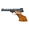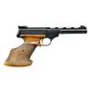 1) Cal. 22 LR. S# 88136T7. Bbl. 5 7/8". An early model International Medalist mfg. in 1967. Blued finish, rnd. bull bbl. w/ vent rib & target sights. Fully serrated slide & wide target trigger w/ gold accent. Right hand stippled target hardwood grips w/ thumb shelf. Triggerguard possesses “AKah” stamp indicating Albrecht Kind GmbH import/proof mark. Also possesses United States import mark under grips: “HERITAGE ARMS NAPLES, FL”. Left side slide lock & safety. Bottom mag. release. MAGS: 1-10 rd. UNATTACHED ACCESSORIES: original German owners manual, notes & fitted hard shell lockable briefcase. CONDITION: original blued finish is complete & consistent w/ thinning only at areas of mechanical intervention. Wood grips are free of noticeable blemishing. Trigger is smooth & crisp. Bore is shiny w/ gentle rifling. Fire control mechanism appears to function correctly when cycled by hand. (21-3827/JZ).