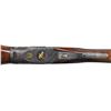 SPECIAL AND GOLD INLAID. Cal. 12 Ga. 2-3/4". S# 242367. The 30" Acme steel barrel with full choke has Remington markings on barrel flats. Barrel is fitted with slightly raised matted ventilated rib. Breech area is engraved with 4" triangles of large deeply cut scroll surrounding gold inlaid game birds on sides; with two quail under "PARKER-A1-SPECIAL" in gold on left. Right side portrays a trio of flying ducks. Muzzle also has triangles of scroll engraving. Black finished action without safety has single trigger and altered grade markings on watertable. Action is engraved with full coverage large scroll surrounding relief gold dogs on left and ducks on right. Trigger plate has a circular scene of two flushing pheasant and a flying goose is on trigger guard bow. Front of trigger plate is gold inlaid with multi-banded shield surrounding "WW" at center below deeply engraved "WALKER". Capped pistol grip buttstock of crotch figured American walnut measures 14-1/4" over black trap pad. Checkering at grip is surrounded by large acanthus scrolls which also appear on side panels. Matching beavertail forend has usual Parker release. S# on iron is re-engraved. MEASUREMENTS: STOCK: DAH: 1-3/8". DAC: 1-3/8". CAST: about 1/4" off. LOP: 14-1/4". WEIGHT: 8 lb. 6 oz. CONDITION: fine as custom finished. Metal retaining nearly all of re-black with some high edge wear. Stocks have a few knicks and bumps in their original oil finish. Bore is bright and shiny. Mechanically good. (25-4301/MGM). CURIO. $3,000-4,000.