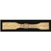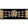 MONOGRAMMED BUCKLE. 35" elegant piteado embroidered, buckle in back, 2.75" wide at front with 6 fancy chains with gold rosettes holding horseshoe with pierced Victorian style gold monogrammed letters: "LP". CONDITION: good to very good overall, fastening buckle in back is rusted. PROVENANCE: Martin Lane Historic & Western Americana Lifetime Collection. (02-21693/JS). $400-600.