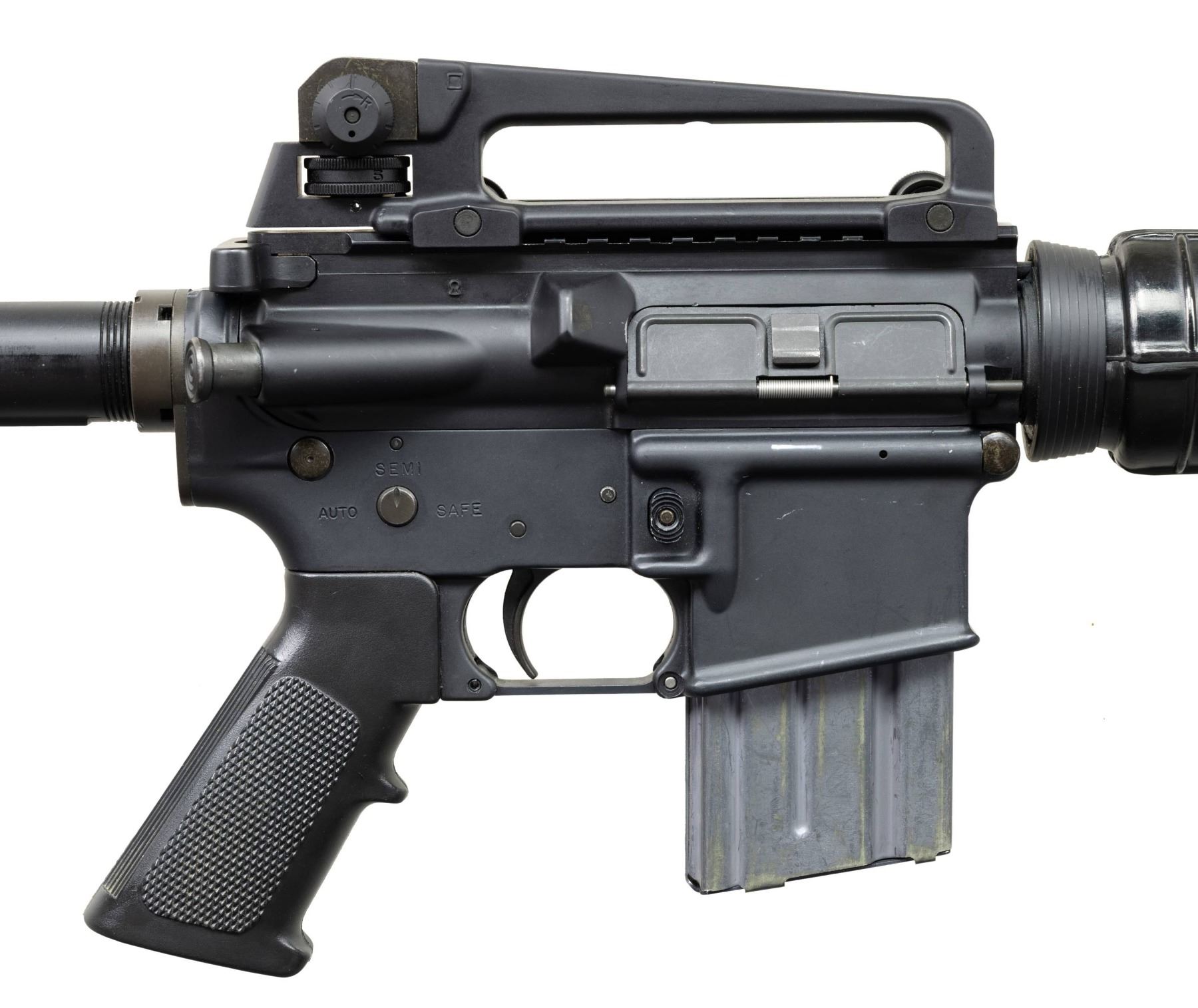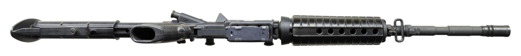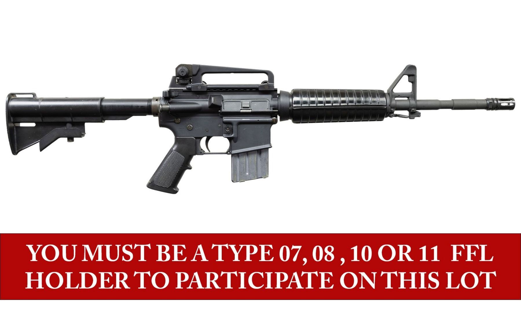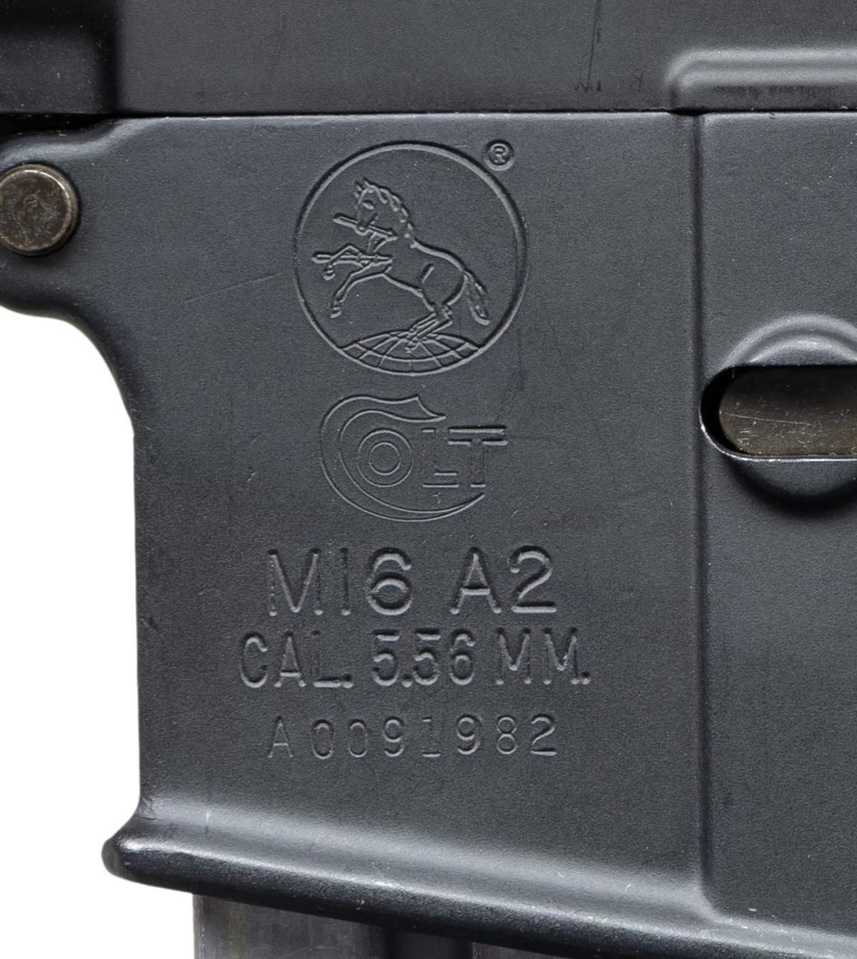 ***BIDDERS INTERESTED IN THIS LOT MUST CURRENTLY HOLD A TYPE 07, 08, 10, OR 11 FFL.*** Cal 5.56mm. S# A0091982. Bbl 16" over muzzle brake. Manufactured by Colt Manufacturing Company Hartford, Connecticut with safe, semi and auto selector positions. A2 style carry handle, hand guard and front sight. Telescopic Stock. MAGS: 1-20rd. CONDITION: overall very good metal finish with some mild scuffs on the barrel and a few light scratches on the receiver. Shiny bore with good rifling. POST 1986 DEALER SAMPLE MACHINE GUN WITH NO LAW (DEMO) LETTER REQUIRED TO TRANSFER. RESTRICTED REGISTRATION POSSESSION LIMITED TO CONTINUED COMPLIANCE WITH PROVISIONS OF PUBLIC LAW 99-308. IF YOU ARE AN 07, 08, 10, or 11 FFL/SOT YOU MAY TAKE TRANSFER OF THIS FIREARM UPON APPROVAL OF TRANSFER. PROVENANCE: Military Museum Collection of Shooters Outpost, Hooksett NH. THIS ITEM WILL BE AVAILABLE FOR PREVIEW BY APPOINTMENT AT THE SHOOTERS OUTPOST MUSEUM IN HOOKSETT, NH. TO SET UP AN APPOINTMENT, PLEASE CALL 207-453-2114. (50-1888/ZAL). MODERN CLASS III. $1,800-2,500.