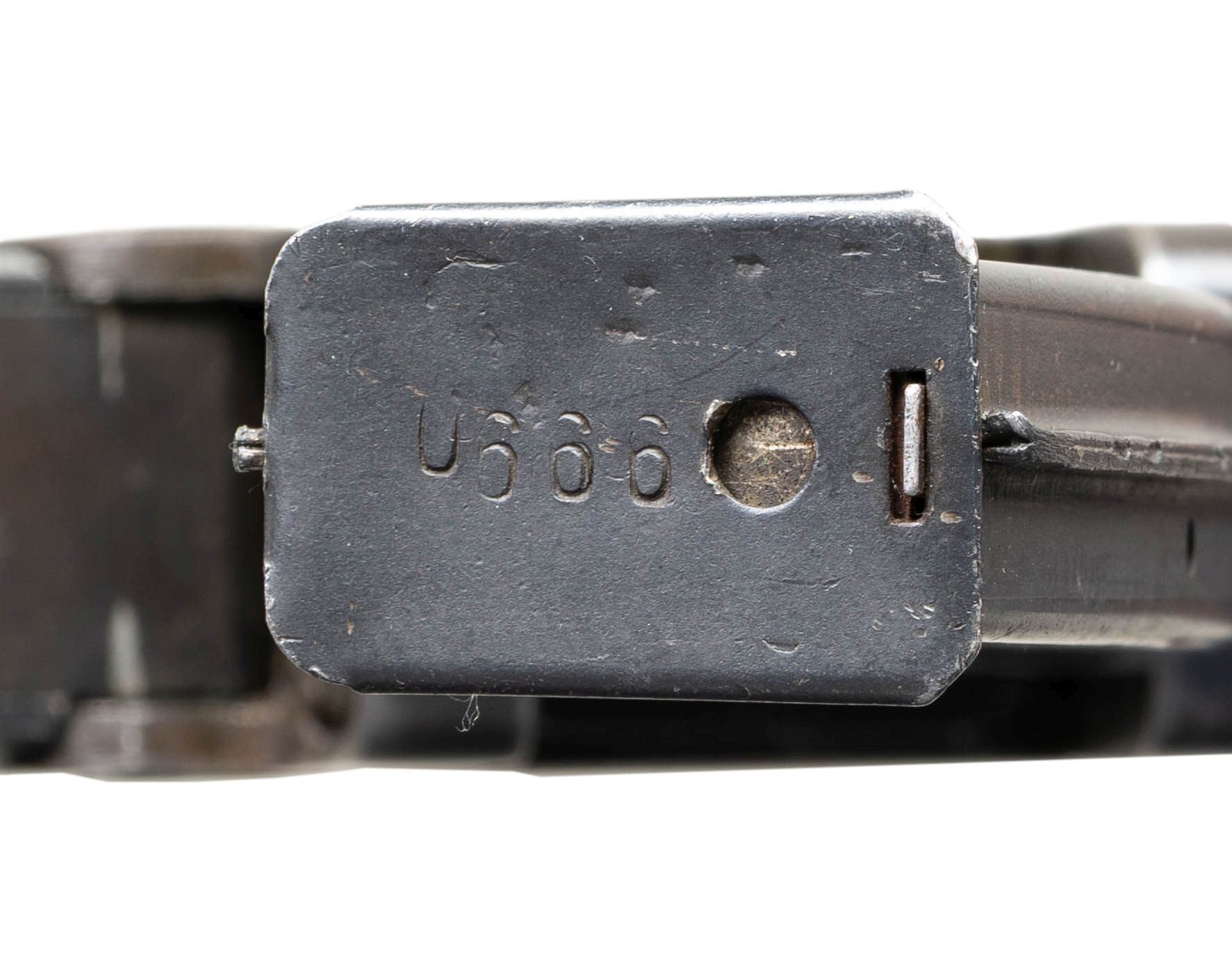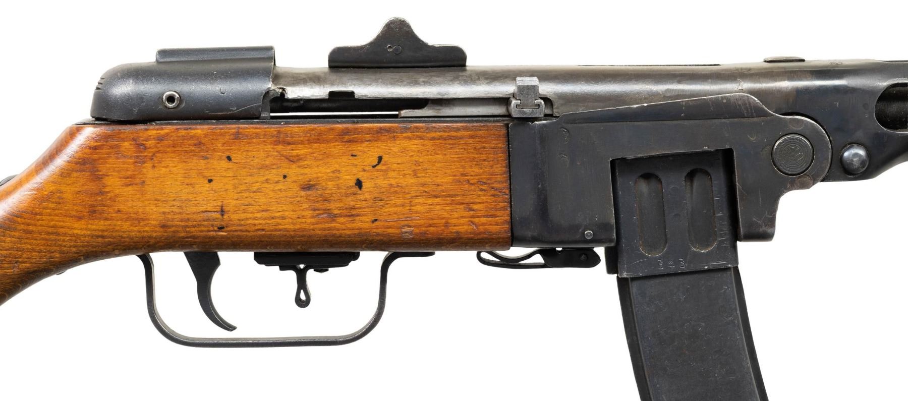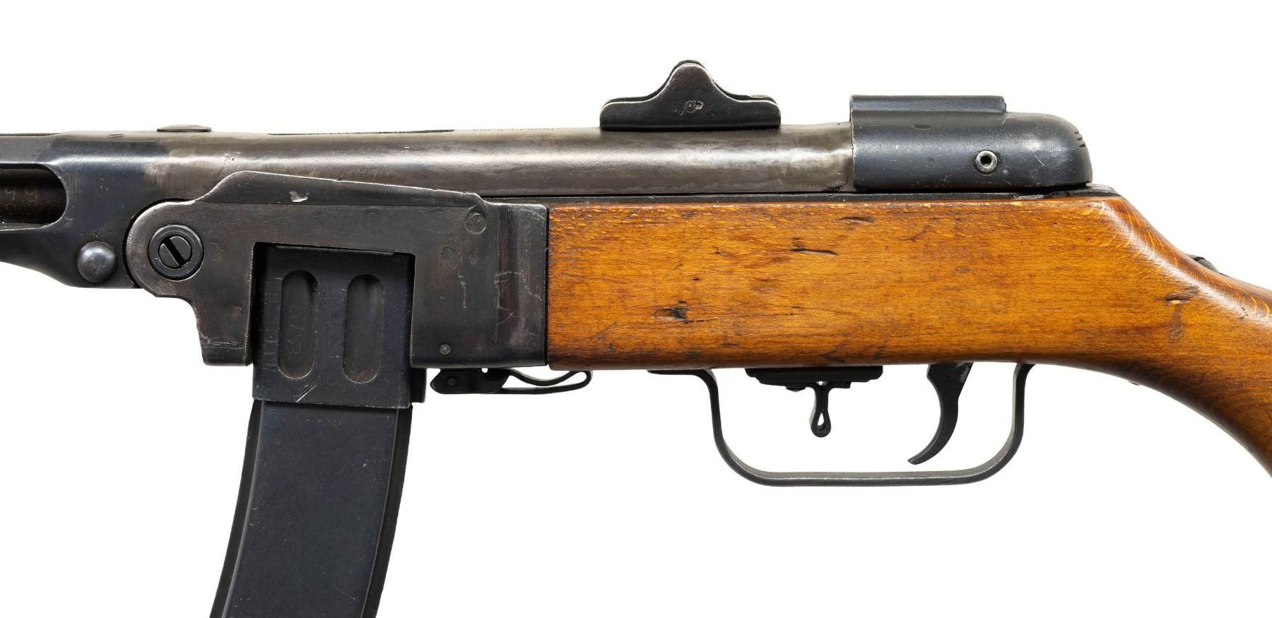GUN. ***BIDDERS INTERESTED IN THIS LOT MUST CURRENTLY HOLD A TYPE 07, 08, 10, OR 11 FFL.*** Cal 7.62x25 Tok. S# FG001. Bbl 10" with electro-pencil "RB8249". Top of receiver is marked "D&T Arms/ New Milford PT/SGI SN SG001" with 1952 date. Stock is marked with BD4693 that matches the trigger guard and rear tang. Receiver has been re-welded. MAGS: 1-35rd. CONDITION: overall fair with finish remaining in the shrouded area. Receiver is void of finish in re-welded area. Stock shows scattered minor handling marks and impressions. Bright bore with sharp rifling. POST 1986 DEALER SAMPLE MACHINE GUN WITH NO LAW (DEMO) LETTER REQUIRED TO TRANSFER. RESTRICTED REGISTRATION POSSESSION LIMITED TO CONTINUED COMPLIANCE WITH PROVISIONS OF PUBLIC LAW 99-308. IF YOU ARE AN 07, 08, 10, or 11 FFL/SOT YOU MAY TAKE TRANSFER OF THIS FIREARM UPON APPROVAL OF TRANSFER. PROVENANCE: Military Museum Collection of Shooters Outpost, Hooksett NH. THIS ITEM WILL BE AVAILABLE FOR PREVIEW BY APPOINTMENT AT THE SHOOTERS OUTPOST MUSEUM IN HOOKSETT, NH. TO SET UP AN APPOINTMENT, PLEASE CALL 207-453-2114. (50-1866/ZAL). MODERN CLASS III. $1,500-2,500.