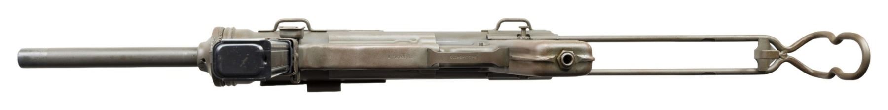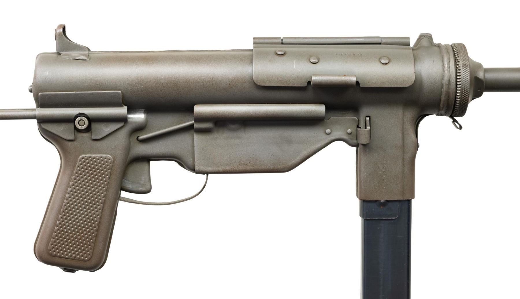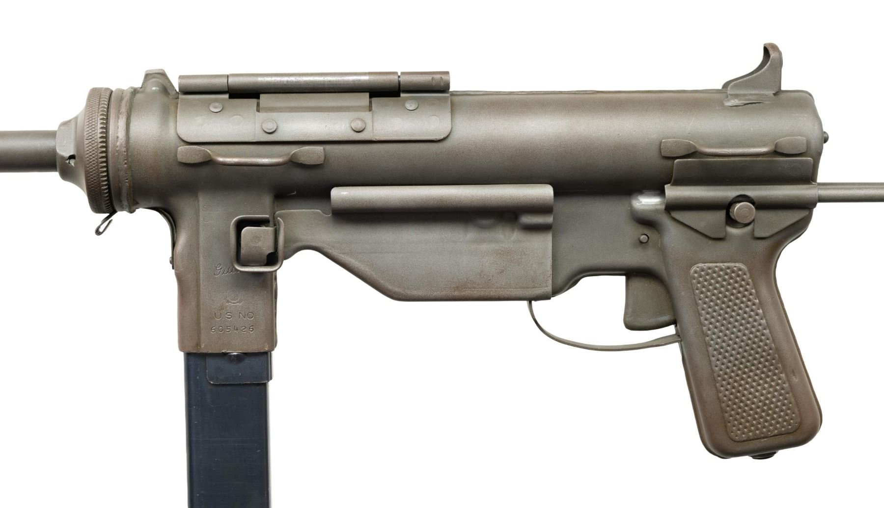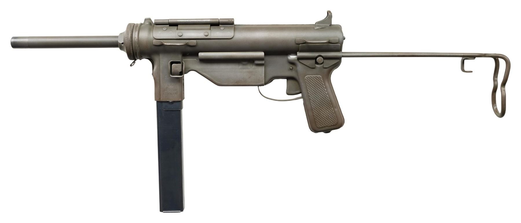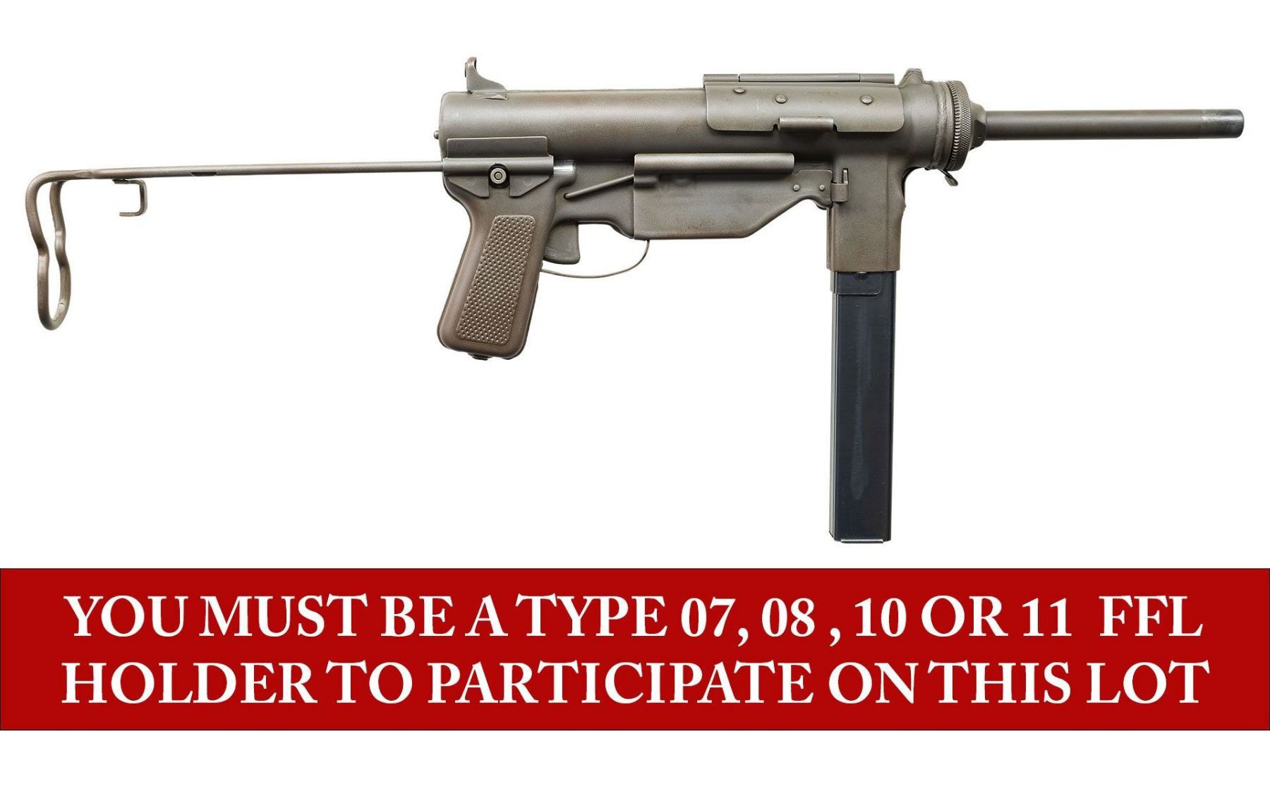 ORDNANCE WORKS M3A1 GREASE GUN SUBMACHINE GUN. ***BIDDERS INTERESTED IN THIS LOT MUST CURRENTLY HOLD A TYPE 07, 08, 10, OR 11 FFL.*** Cal 45 ACP. S# 605426. Bbl 8". Left side of magazine well is marked "Sub MACH GUN/CAL 45 M3A1/Guide/US No/Serial number". Right side of magazine well is stamped "Ohio Ordnance Works". "C" proof barrel and receiver. MAGS: 1-30 rd. Blue marked "SPWGLC-153427". CONDITION: overall good reparkerized metal finish with some wear at the muzzle and high edges with a few light scratches. Bore has light frosting and distinct rifling. POST 1986 DEALER SAMPLE MACHINE GUN WITH NO LAW (DEMO) LETTER REQUIRED TO TRANSFER. RESTRICTED REGISTRATION POSSESSION LIMITED TO CONTINUED COMPLIANCE WITH PROVISIONS OF PUBLIC LAW 99-308. IF YOU ARE AN 07, 08, 10, or 11 FFL/SOT YOU MAY TAKE TRANSFER OF THIS FIREARM UPON APPROVAL OF TRANSFER. PROVENANCE: Military Museum Collection of Shooters Outpost, Hooksett NH. THIS ITEM WILL BE AVAILABLE FOR PREVIEW BY APPOINTMENT AT THE SHOOTERS OUTPOST MUSEUM IN HOOKSETT, NH. TO SET UP AN APPOINTMENT, PLEASE CALL 207-453-2114. (50-1932/ZAL). MODERN CLASS III. $3,000-5,000.