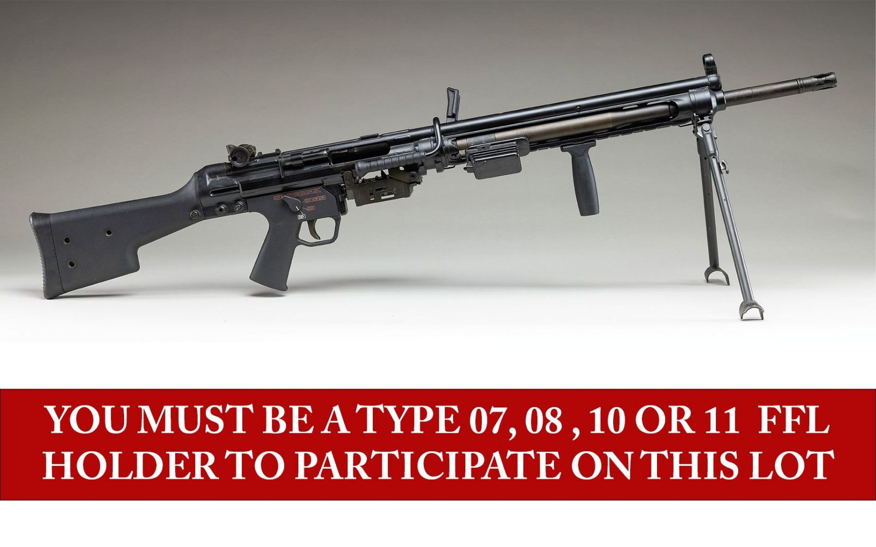 First and foremost, All NFA Rules Apply. All Class III firearms must be registered and properly transferred in compliance with BATFE rules. Class III Firearms we may be dealing with include the following: Machine Guns (MG), (Transferable, Pre-86 Dealer Samples and Post-86 Dealer Samples), Silencers, Destructive Devices (DD), Short Barreled Rifles (SBR), Short Barreled Shotguns (SBS) and Any Other Weapon (A.O.W.). If you are an individual who resides in an area where these firearms are legal, you may bid on these items. You are responsible for knowing your State and Local laws.