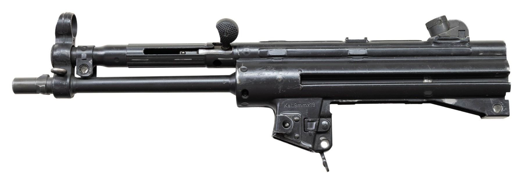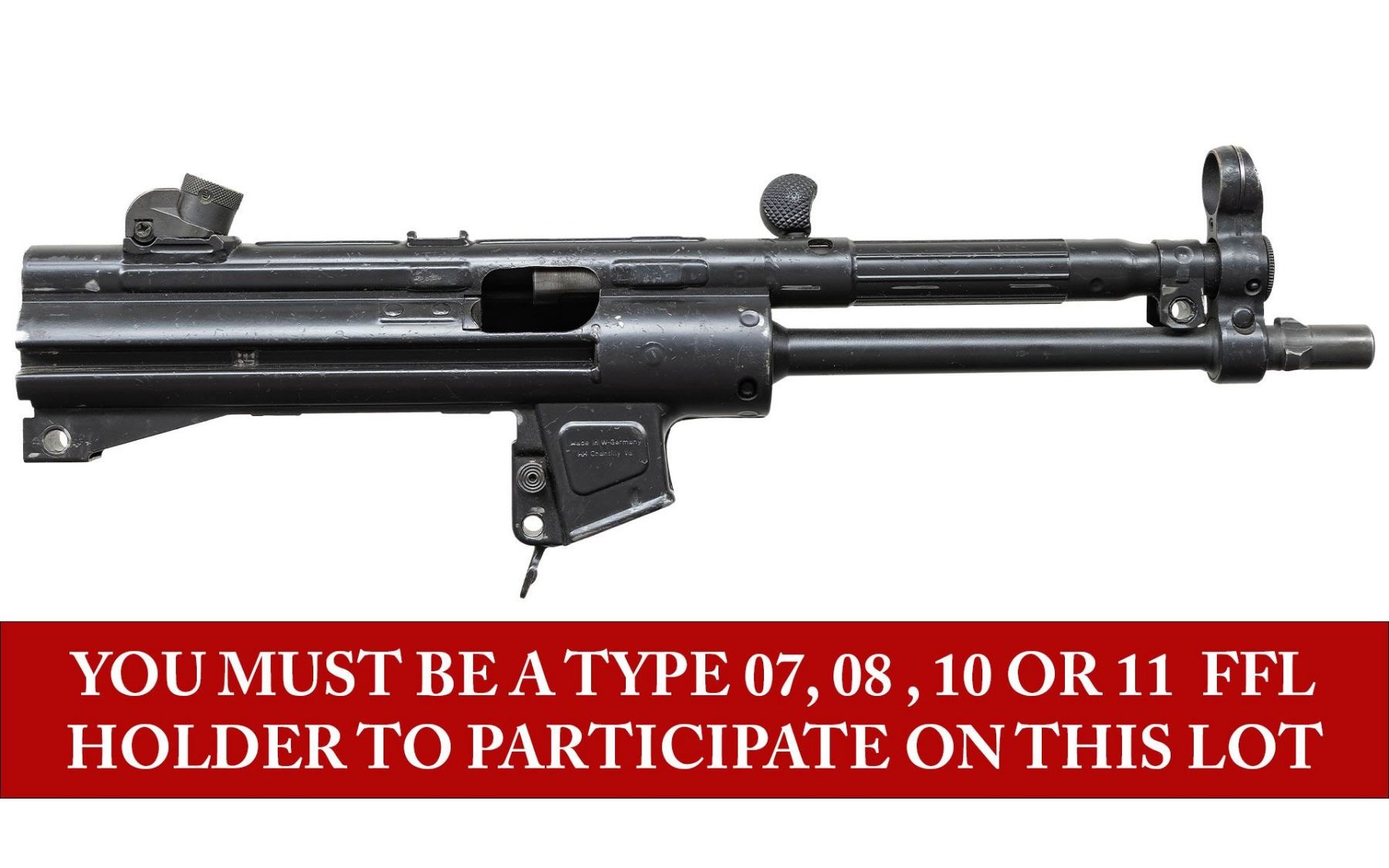***BIDDERS INTERESTED IN THIS LOT MUST CURRENTLY HOLD A TYPE 07, 08, 10, OR 11 FFL.*** Cal 9x19. S# C324101. Bbl 9". "Made in West Germany with Eagle NIG Antler Proof" on top rib. Includes charging handle, rear sight and magazine release. No other mechanical components. CONDITION: overall good metal finish with numerous gathered light dings and scratches. Bore shows heavy wear with frosting and scattered pits. POST 1986 DEALER SAMPLE MACHINE GUN WITH NO LAW (DEMO) LETTER REQUIRED TO TRANSFER. RESTRICTED REGISTRATION POSSESSION LIMITED TO CONTINUED COMPLIANCE WITH PROVISIONS OF PUBLIC LAW 99-308. IF YOU ARE AN 07, 08, 10, or 11 FFL/SOT YOU MAY TAKE TRANSFER OF THIS FIREARM UPON APPROVAL OF TRANSFER. PROVENANCE: Military Museum Collection of Shooters Outpost, Hooksett NH. THIS ITEM WILL BE AVAILABLE FOR PREVIEW BY APPOINTMENT AT THE SHOOTERS OUTPOST MUSEUM IN HOOKSETT, NH. TO SET UP AN APPOINTMENT, PLEASE CALL 207-453-2114. (50-1880/ZAL) MODERN CLASS III. $600-1,200.