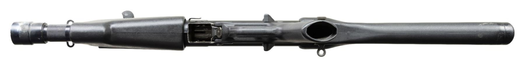 ***BIDDERS INTERESTED IN THIS LOT MUST CURRENTLY HOLD A TYPE 07, 08, 10, OR 11 FFL.*** Cal 9x19mm. S# 62-380187. Bbl 9". Top rail marked "HK, MP5, Serial number, Eagle N AB Antler Proof". Drum rear sight. Flashlight handguard. Full, burst, semi and safe ambidextrous selector. MAGS: 1-30 rd. CONDITION: overall very fine with only a couple of minor scuffs and light scratches. Flashlight does a have a couple of dings and marks. Shiny bore with some wear to the rifling. POST 1986 DEALER SAMPLE MACHINE GUN WITH NO LAW (DEMO) LETTER REQUIRED TO TRANSFER. RESTRICTED REGISTRATION POSSESSION LIMITED TO CONTINUED COMPLIANCE WITH PROVISIONS OF PUBLIC LAW 99-308. IF YOU ARE AN 07, 08, 10, or 11 FFL/SOT YOU MAY TAKE TRANSFER OF THIS FIREARM UPON APPROVAL OF TRANSFER. PROVENANCE: Military Museum Collection of Shooters Outpost, Hooksett NH. THIS ITEM WILL BE AVAILABLE FOR PREVIEW BY APPOINTMENT AT THE SHOOTERS OUTPOST MUSEUM IN HOOKSETT, NH. TO SET UP AN APPOINTMENT, PLEASE CALL 207-453-2114. (50-1929/ZAL). MODERN CLASS III. $6,000-8,000.