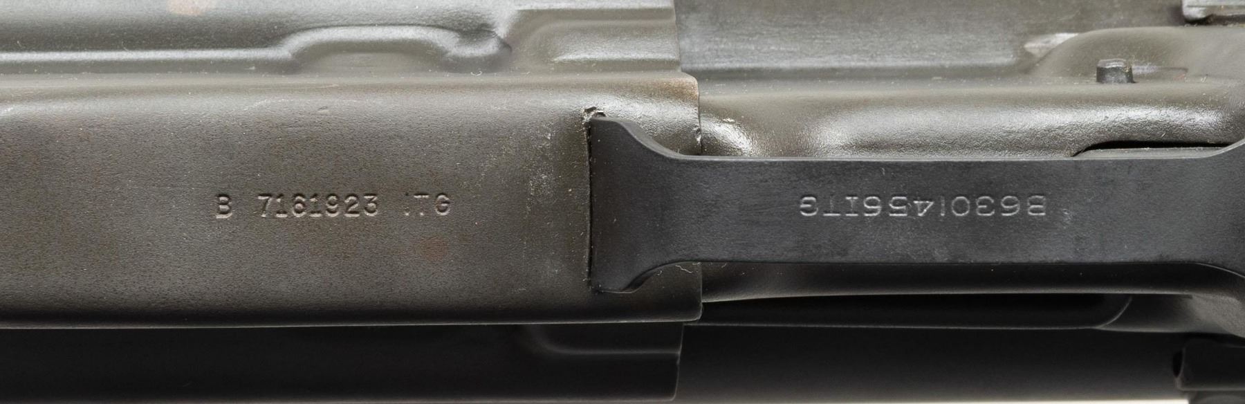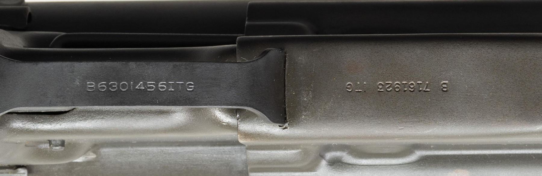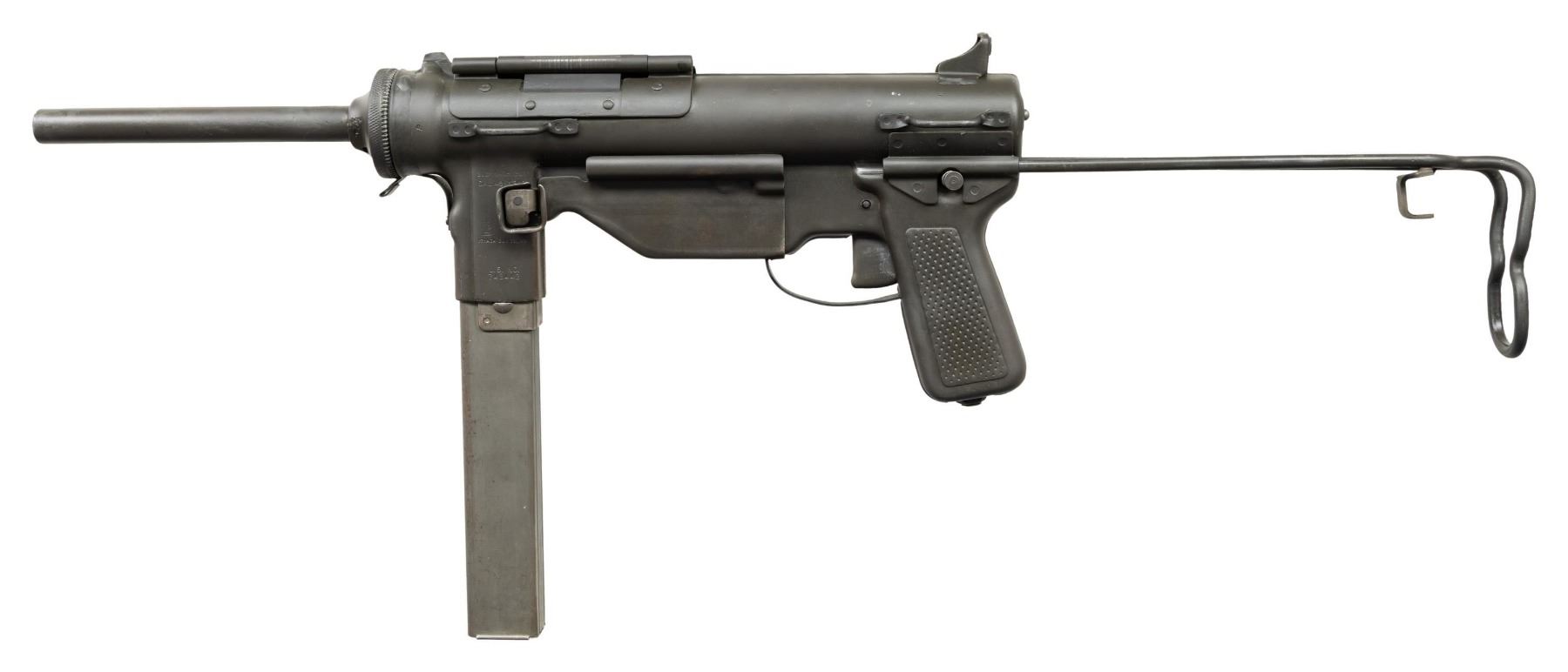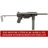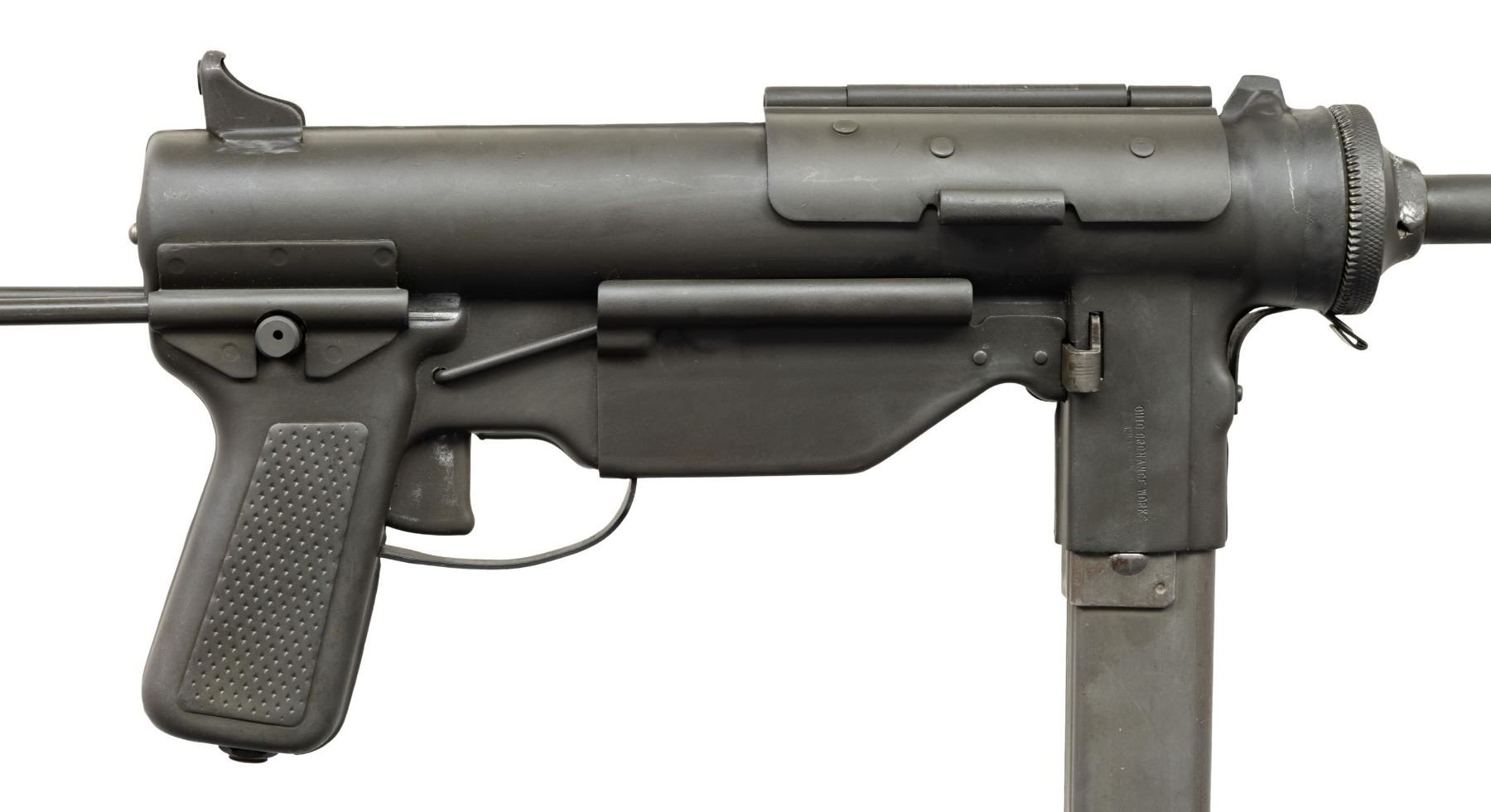 M3A1 GREASE GUN SUBMACHINE GUN. ***BIDDERS INTERESTED IN THIS LOT MUST CURRENTLY HOLD A TYPE 07, 08, 10, OR 11 FFL.*** Cal 45 ACP. S# 743443. Bbl 8". C proof barrel and receiver. Left side of mag well is marked "Sub-mach.gun/cal.45-m3a1/Ithaca Gun Co., Inc./U.S.A./743443". Right side of mag well is marked "Ohio Ordnance Works". MAGS: 1-30 rd. CONDITION: overall very good reparkerized metal finish with a couple of small spots of pitting mostly found around ejection port. Bright shiny bore with nice rifling. POST 1986 DEALER SAMPLE MACHINE GUN WITH NO LAW (DEMO) LETTER REQUIRED TO TRANSFER. RESTRICTED REGISTRATION POSSESSION LIMITED TO CONTINUED COMPLIANCE WITH PROVISIONS OF PUBLIC LAW 99-308. IF YOU ARE AN 07, 08, 10, or 11 FFL/SOT YOU MAY TAKE TRANSFER OF THIS FIREARM UPON APPROVAL OF TRANSFER. PROVENANCE: Military Museum Collection of Shooters Outpost, Hooksett NH. THIS ITEM WILL BE AVAILABLE FOR PREVIEW BY APPOINTMENT AT THE SHOOTERS OUTPOST MUSEUM IN HOOKSETT, NH. TO SET UP AN APPOINTMENT, PLEASE CALL 207-453-2114. (50-1889/ZAL). MODERN CLASS III. $3,000-5,000.