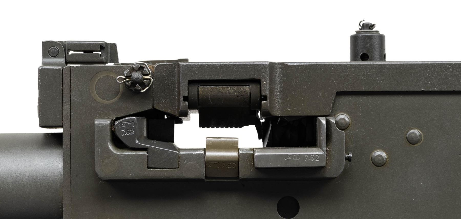 AUTO MACHINE GUN. ***BIDDERS INTERESTED IN THIS LOT MUST CURRENTLY HOLD A TYPE 07, 08, 10, OR 11 FFL.*** Cal 7.62x51. S# JLM19191. Bbl 24". The 1919 is one of the most iconic ground & vehicle mounted machine guns in U.S. Military history w/ such a long range of service, from the early 1920s through Vietnam. Right side plate is marked "No. JLM1919/Browning design/U.S. Cal. 30 1919 A4/Made in U.S.A/JLM Man NH". Left plate marked "7.62n with a P ordnance bomb proof" on top edge. Rear sight is marked "7.62" and graduated to 1800 yards. Flip up front sight. Top cover marked "384781". CONDITION: consignor states unfired after manufacture with very nice reparkerized metal finish. Showing only a few minor handling marks. Very nice bright shiny bore with sharp rifling. POST 1986 DEALER SAMPLE MACHINE GUN WITH NO LAW (DEMO) LETTER REQUIRED TO TRANSFER. RESTRICTED REGISTRATION POSSESSION LIMITED TO CONTINUED COMPLIANCE WITH PROVISIONS OF PUBLIC LAW 99-308. IF YOU ARE AN 07, 08, 10, or 11 FFL/SOT YOU MAY TAKE TRANSFER OF THIS FIREARM UPON APPROVAL OF TRANSFER. PROVENANCE: Military Museum Collection of Shooters Outpost, Hooksett NH. THIS ITEM WILL BE AVAILABLE FOR PREVIEW BY APPOINTMENT AT THE SHOOTERS OUTPOST MUSEUM IN HOOKSETT, NH. TO SET UP AN APPOINTMENT, PLEASE CALL 207-453-2114. (50-1891/ZAL). MODERN CLASS III. $3,000-5,000.
