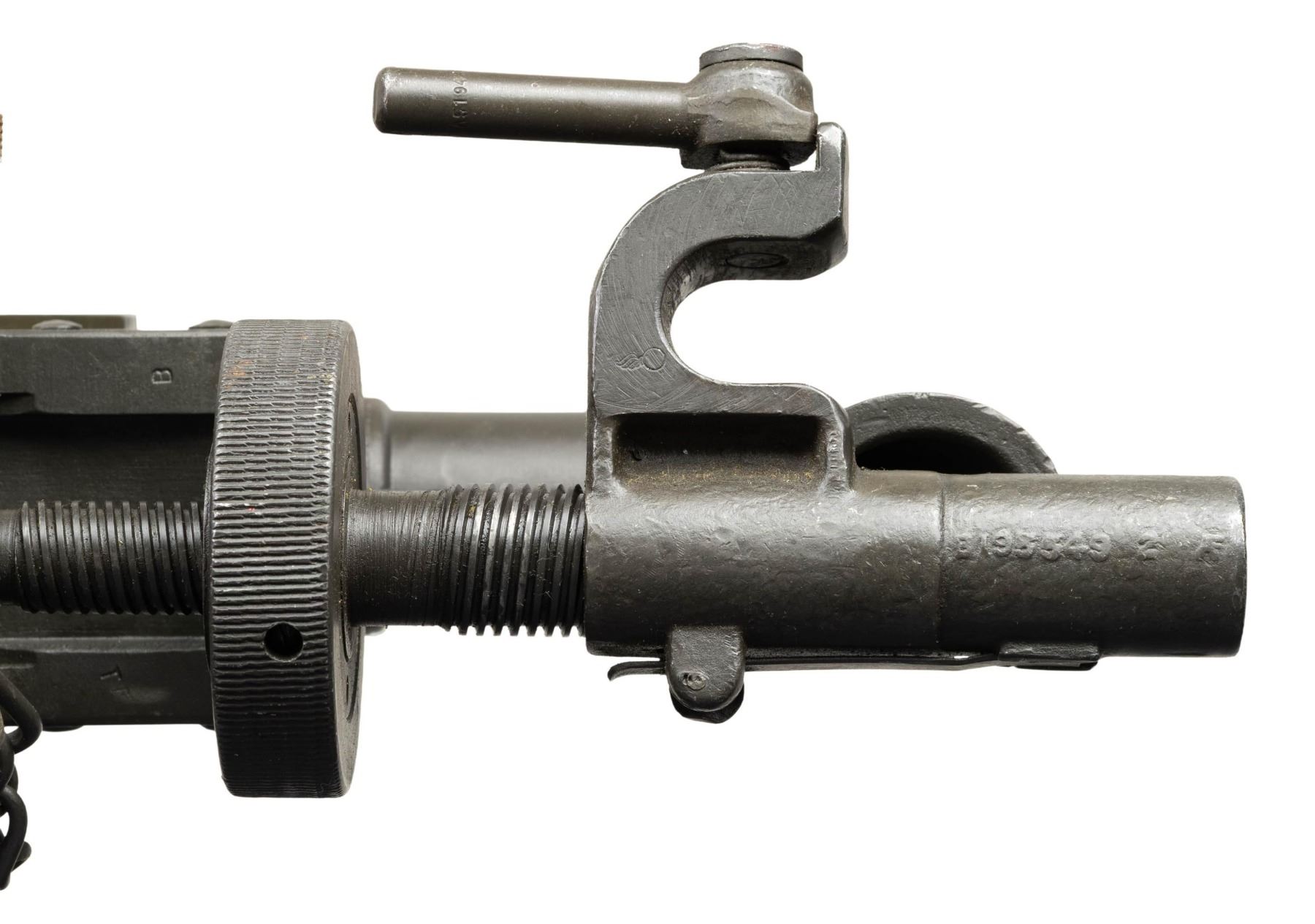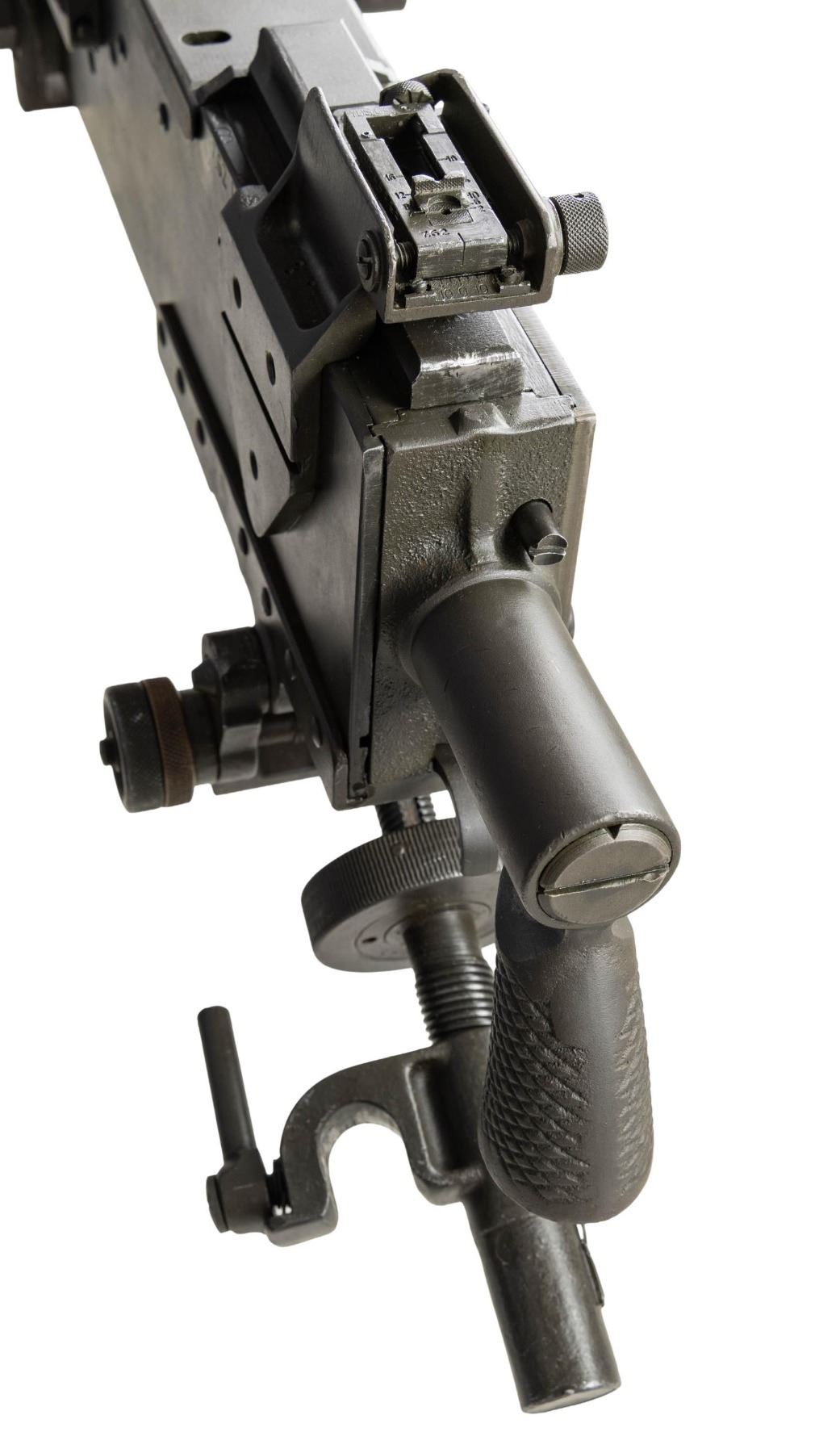 GUN. ***BIDDERS INTERESTED IN THIS LOT MUST CURRENTLY HOLD A TYPE 07, 08, 10, OR 11 FFL.*** Cal. 7.62x51. S# JLM19192. Bbl 25". The 1919 is one of the most iconic ground & vehicle mounted machine guns in U.S. Military history w/such a long range of service, from the early 1920s through Vietnam. Right side plate marked "No. JLM 19192/Browning design/U.S.Cal.30 1919-a4/made in U.S.A./JLM Man NH". Left side plate marked "7.62n". Cover is marked "492777". Includes spindle and elevator, rear sight marked for 7.62 and graduated to 1800 yards. Flip up blade front sight. CONDITION: overall very fine, reparkerized finish. Consignor states unfired after manufactured. Bore is bright with nice rifling. POST 1986 DEALER SAMPLE MACHINE GUN WITH NO LAW (DEMO) LETTER REQUIRED TO TRANSFER. RESTRICTED REGISTRATION POSSESSION LIMITED TO CONTINUED COMPLIANCE WITH PROVISIONS OF PUBLIC LAW 99-308. IF YOU ARE AN 07, 08, 10, or 11 FFL/SOT YOU MAY TAKE TRANSFER OF THIS FIREARM UPON APPROVAL OF TRANSFER. PROVENANCE: Military Museum Collection of Shooters Outpost, Hooksett NH. THIS ITEM WILL BE AVAILABLE FOR PREVIEW BY APPOINTMENT AT THE SHOOTERS OUTPOST MUSEUM IN HOOKSETT, NH. TO SET UP AN APPOINTMENT, PLEASE CALL 207-453-2114. (50-1862/ZAL). MODERN CLASS III. $3,000-5,000.