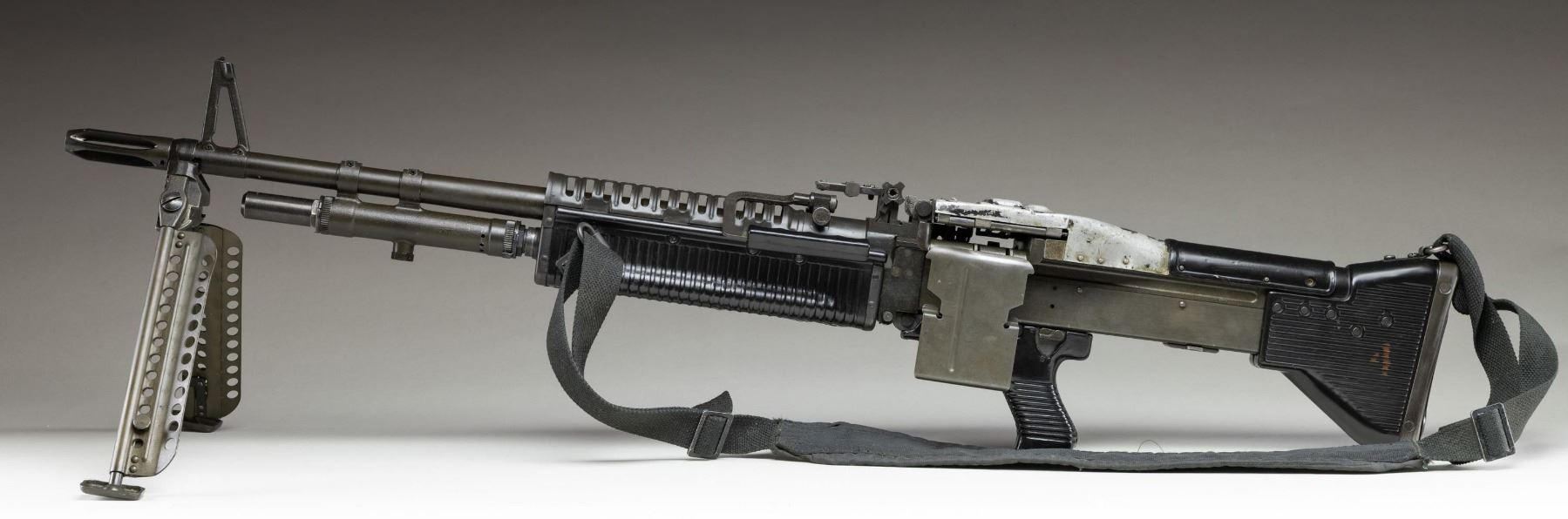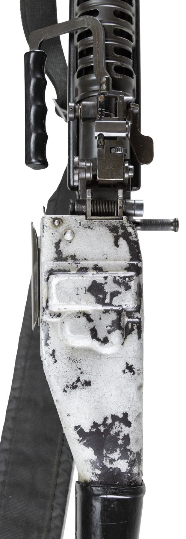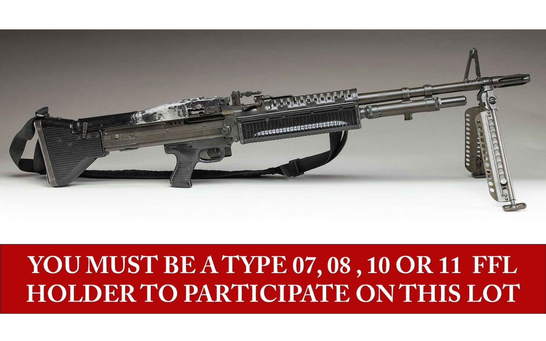 GUN. ***BIDDERS INTERESTED IN THIS LOT MUST CURRENTLY HOLD A TYPE 07, 08, 10, OR 11 FFL.*** Cal. 7.62x51. S# M6011. Bbl. 26" over flash hider. An opportunity to transfer in a sample of "The Pig". Bottom of the receiver is marked "JRW M60 / Edgewater, FL / Cal. 308 #M6011". US GI part numbers on the trigger housing, cocking handle assembly, feed tray assembly, buttstock, and various small parts. P and M proofed bbl. Equipped with a folding bipod. CONDITION: overall fair metal finish. Cover has heavily worn finish with numerous small dents. Furniture shows scattered handling marks. Bbl has a couple of spots of crusted oxidation. Bore is bright with a couple of spots and sharp rifling. POST 1986 DEALER SAMPLE MACHINE GUN WITH NO LAW (DEMO) LETTER REQUIRED TO TRANSFER. RESTRICTED REGISTRATION POSSESSION LIMITED TO CONTINUED COMPLIANCE WITH PROVISIONS OF PUBLIC LAW 99-308. IF YOU ARE AN 07, 08, 10, or 11 FFL/SOT YOU MAY TAKE TRANSFER OF THIS FIREARM UPON APPROVAL OF TRANSFER. PROVENANCE: Military Museum Collection of Shooters Outpost, Hooksett NH. THIS ITEM WILL BE AVAILABLE FOR PREVIEW BY APPOINTMENT AT THE SHOOTERS OUTPOST MUSEUM IN HOOKSETT, NH. TO SET UP AN APPOINTMENT, PLEASE CALL 207-453-2114. (50-1861/ZAL). MODERN CLASS III. $7,000-11,000.