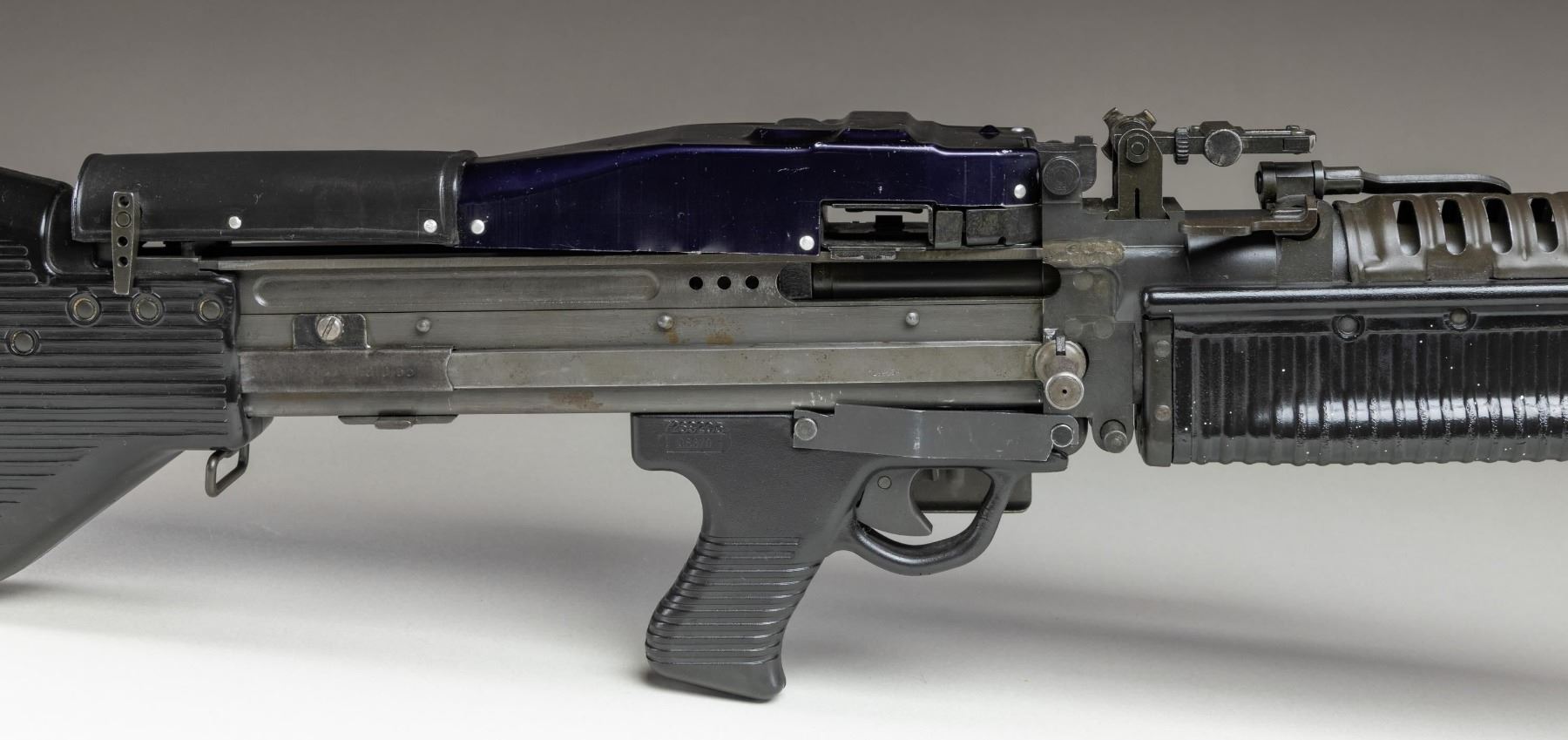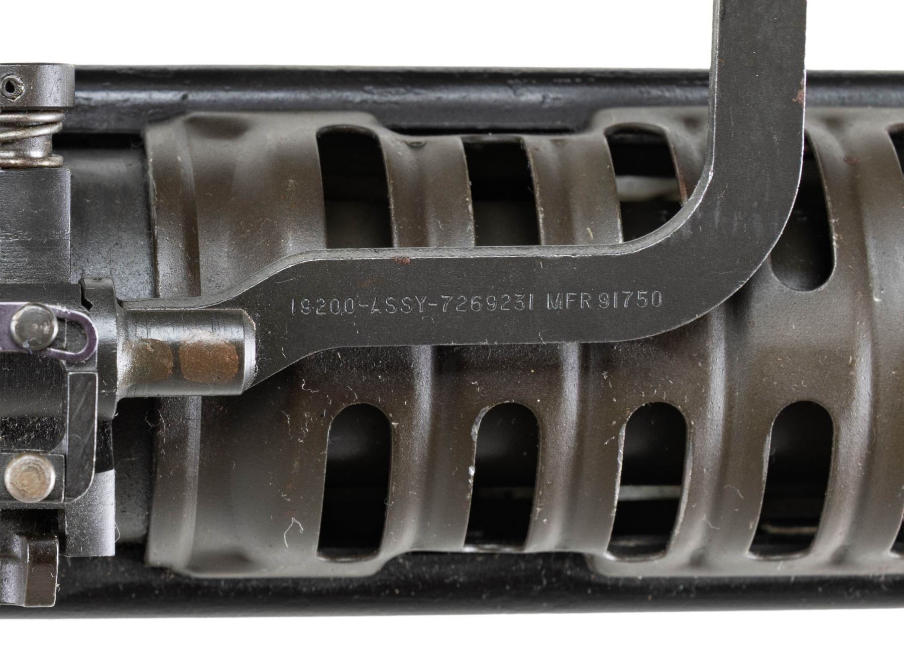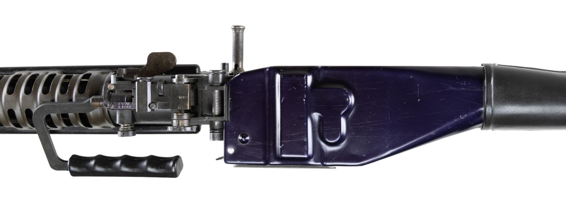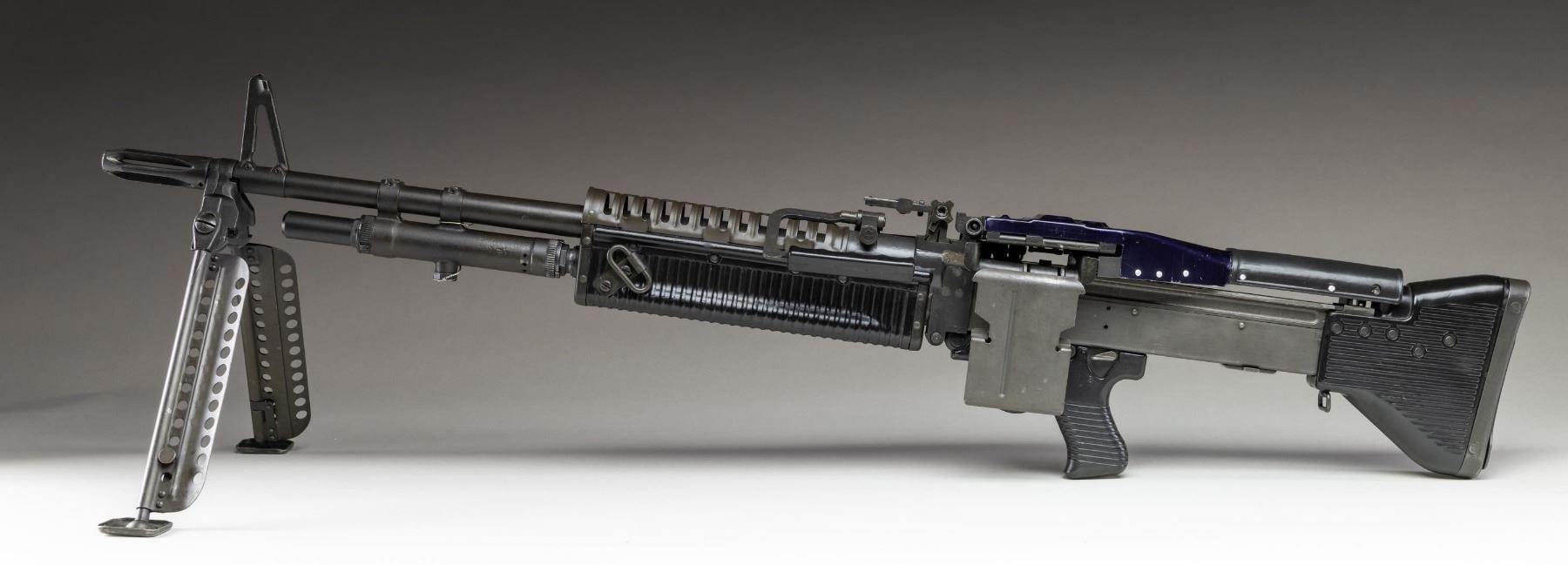 MACHINE GUN. ***BIDDERS INTERESTED IN THIS LOT MUST CURRENTLY HOLD A TYPE 07, 08, 10, OR 11 FFL.*** Cal. 7.62x51. S# M6015. Bbl. 26". An opportunity to transfer in a sample of "The Pig". Bottom of the receiver is marked "JRW M60 / Edgewater, FL / Cal. 308 #M6015". US GI Parts number found on the trigger housing, cocking handle assembly, feed tray assembly, buffer, buttstock, bolt and operating rod assembly. Left side of barrel marked "93412-726902 2-71-1P3973" with P & M proof. Rear sight is graduated 300-1100yds. CONDITION: overall very fine with a few minor handling marks. Nice bright bore with sharp rifling. POST 1986 DEALER SAMPLE MACHINE GUN WITH NO LAW (DEMO) LETTER REQUIRED TO TRANSFER. RESTRICTED REGISTRATION POSSESSION LIMITED TO CONTINUED COMPLIANCE WITH PROVISIONS OF PUBLIC LAW 99-308. IF YOU ARE AN 07, 08, 10, or 11 FFL/SOT YOU MAY TAKE TRANSFER OF THIS FIREARM UPON APPROVAL OF TRANSFER. PROVENANCE: Military Museum Collection of Shooters Outpost, Hooksett NH. THIS ITEM WILL BE AVAILABLE FOR PREVIEW BY APPOINTMENT AT THE SHOOTERS OUTPOST MUSEUM IN HOOKSETT, NH. TO SET UP AN APPOINTMENT, PLEASE CALL 207-453-2114. (50-1860/ZAL) MODERN CLASS III. $7,000-11,000.