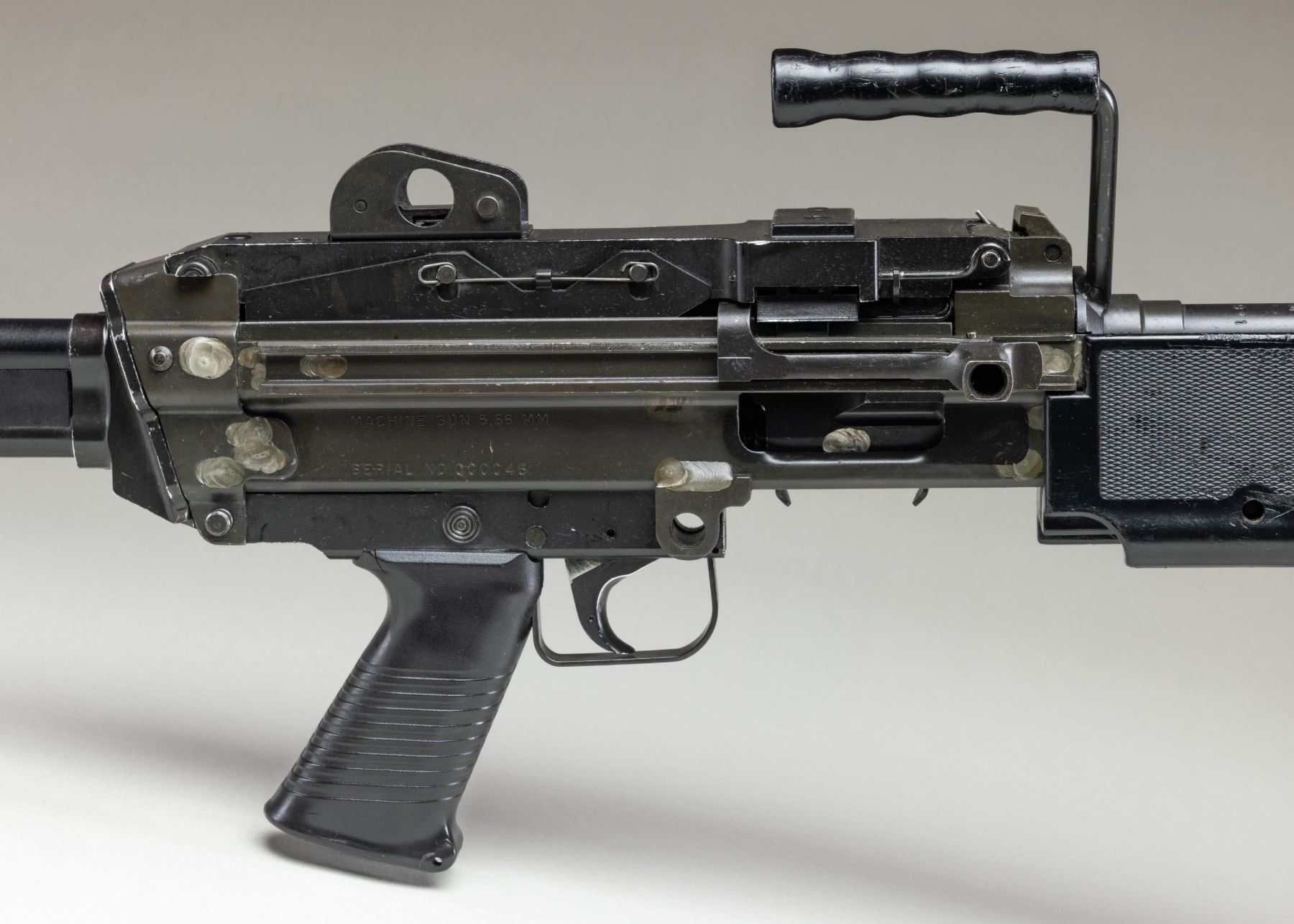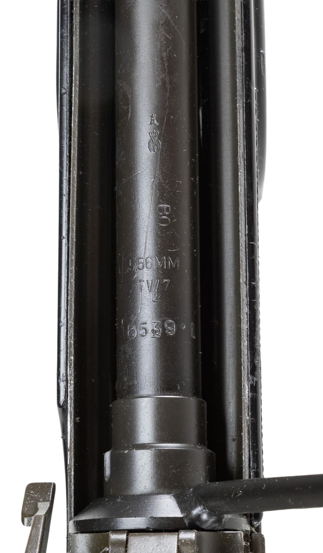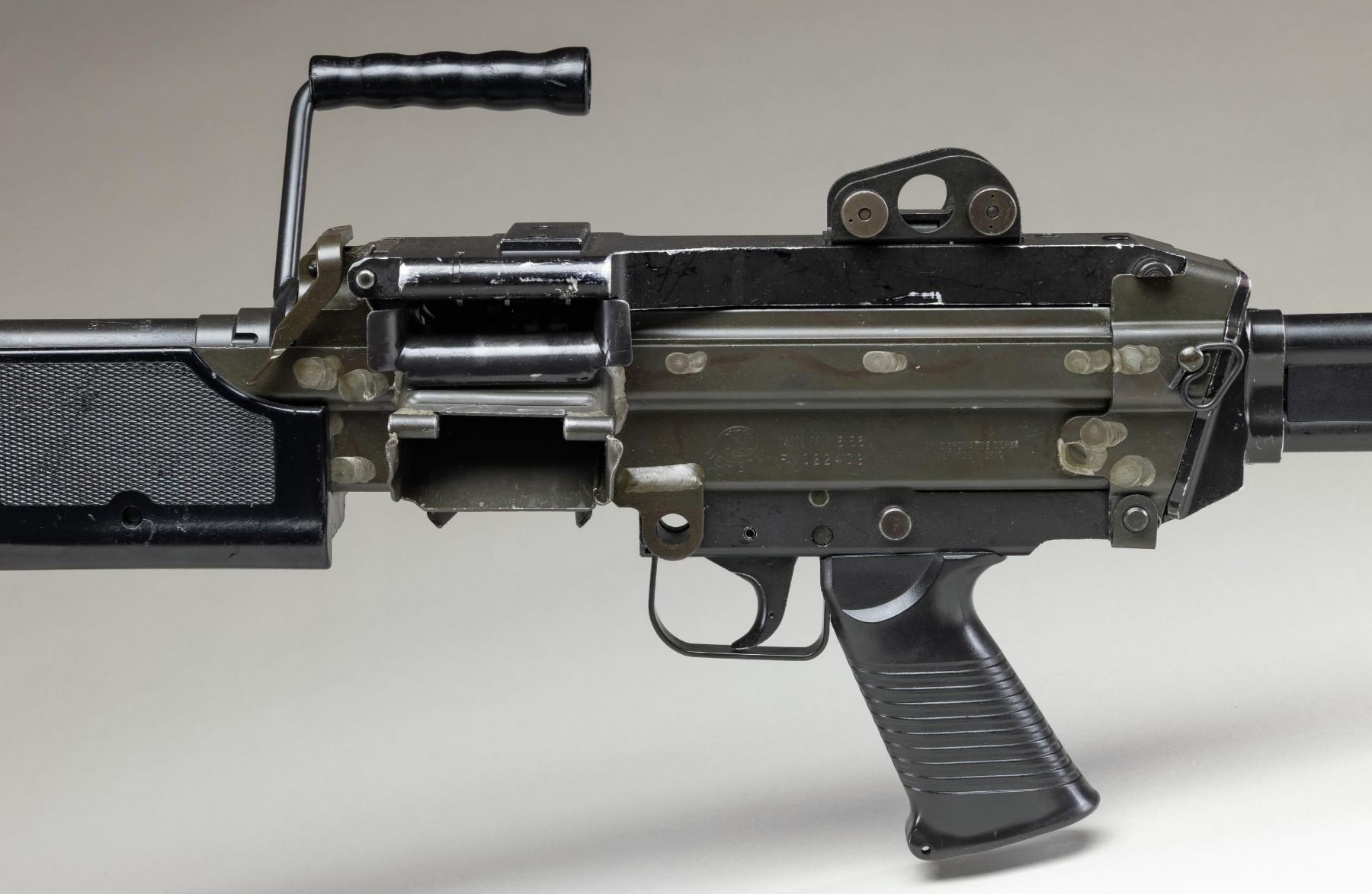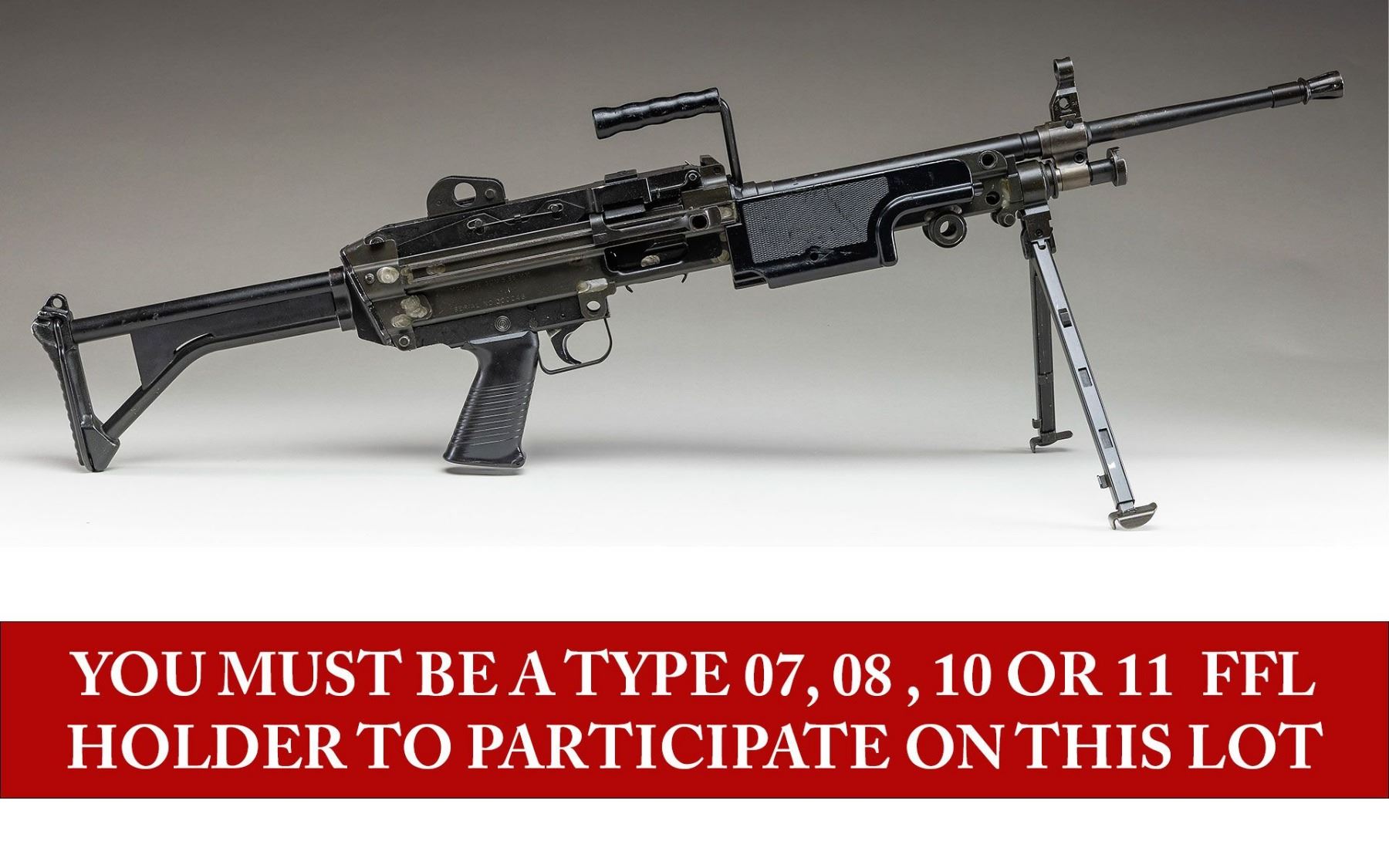 ***BIDDERS INTERESTED IN THIS LOT MUST CURRENTLY HOLD A TYPE 07, 08, 10, OR 11 FFL.*** Cal. 5.56mm. S# 000046. Bbl. 20" over flash hider. A rare opportunity to transfer in the early FN Minimi, which would eventually become the M249 SAW, well known in the U.S. Military. Bbl is Belgian proofed / "BO / 5.56mm / TW7 / 8539.1". Left side of receiver is marked with FN Herstal trademark next to "MINIMI 5.56 / F.N. 022409" & "Ohio Ordnance Works / Chardon, OH". Right side of the receiver is marked "Machine Gun 5,56mm / Serial NO 000046". "TRM" is stamped on the belly of the receiver. CONDITION: overall very good with nicely reapplied parkerized finish showing scattered mild handling marks. Furniture has a few scattered moderate to heavy scratches and handling marks. Very nice bright bore with sharp rifling. POST 1986 DEALER SAMPLE MACHINE GUN WITH NO LAW (DEMO) LETTER REQUIRED TO TRANSFER. RESTRICTED REGISTRATION POSSESSION LIMITED TO CONTINUED COMPLIANCE WITH PROVISIONS OF PUBLIC LAW 99-308. IF YOU ARE AN 07, 08, 10, or 11 FFL/SOT YOU MAY TAKE TRANSFER OF THIS FIREARM UPON APPROVAL OF TRANSFER. PROVENANCE: Military Museum Collection of Shooters Outpost, Hooksett NH. THIS ITEM WILL BE AVAILABLE FOR PREVIEW BY APPOINTMENT AT THE SHOOTERS OUTPOST MUSEUM IN HOOKSETT, NH. TO SET UP AN APPOINTMENT, PLEASE CALL 207-453-2114. (50-1892/ZAL). MODERN CLASS III. $6,500-8,500.