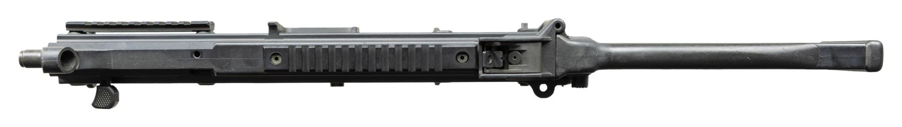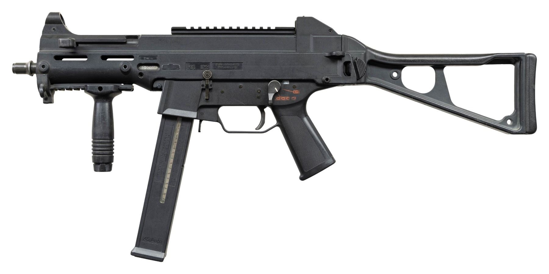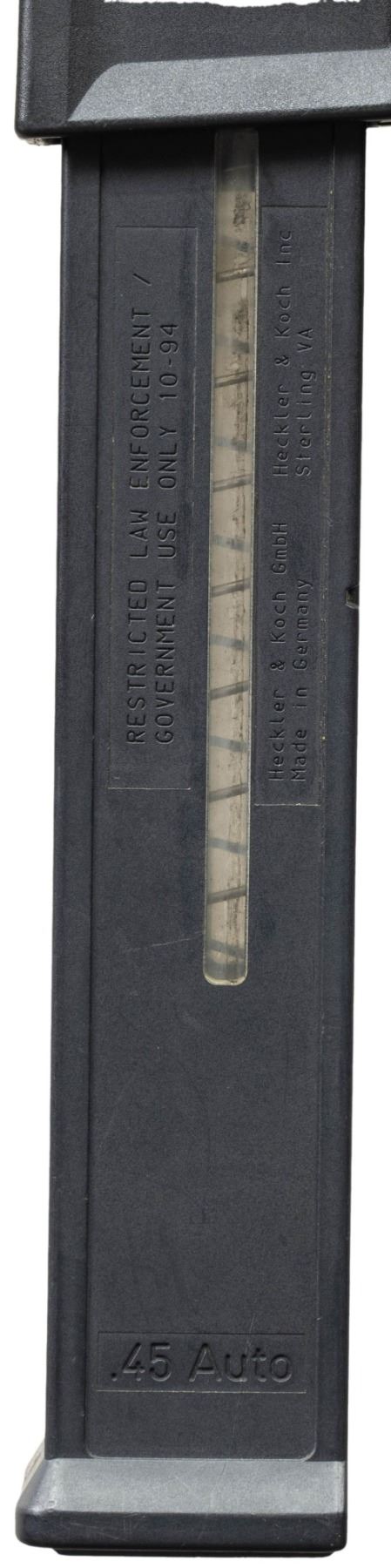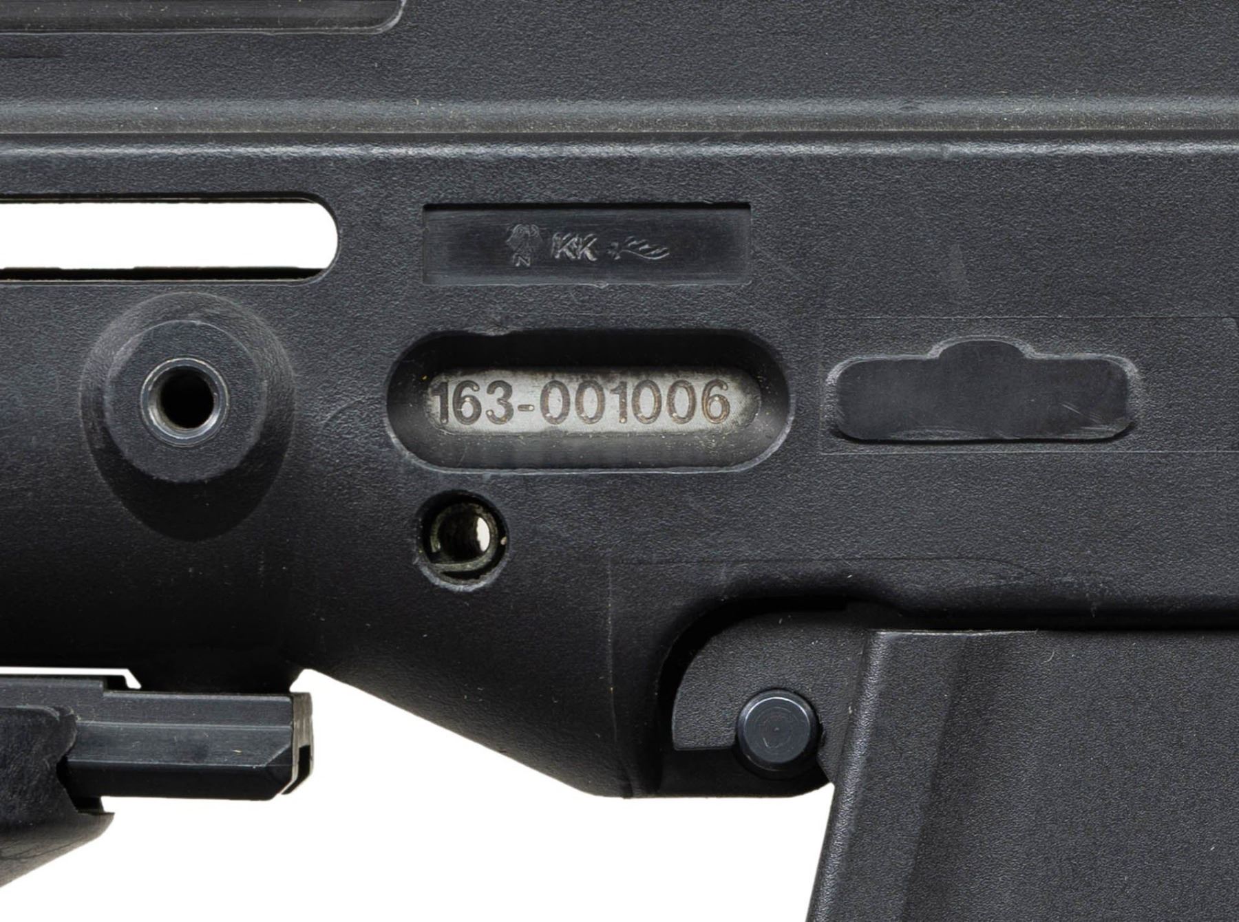 GUN. ***BIDDERS INTERESTED IN THIS LOT MUST CURRENTLY HOLD A TYPE 07, 08, 10, OR 11 FFL.*** Cal 45 ACP. S# 163-001006. Bbl 8". Here is an opportunity to transfer in the modern successor to the iconic HK MP5 submachine gun. Left side is marked "Eagle-N HK Antler Proof, Made in Germany". Right side is marked "Heckler & Koch. Sterling VA". Folding stock. Knights Armament vertical foregrip. MAGS: 1-25 rd. CONDITION: overall very good with some scuffing and handling marks. There is bulge at the midpoint of the barrel. Bore has some pitting and wear to the rifling. POST 1986 DEALER SAMPLE MACHINE GUN WITH NO LAW (DEMO) LETTER REQUIRED TO TRANSFER. RESTRICTED REGISTRATION POSSESSION LIMITED TO CONTINUED COMPLIANCE WITH PROVISIONS OF PUBLIC LAW 99-308. IF YOU ARE AN 07, 08, 10, or 11 FFL/SOT YOU MAY TAKE TRANSFER OF THIS FIREARM UPON APPROVAL OF TRANSFER. PROVENANCE: Military Museum Collection of Shooters Outpost, Hooksett NH. THIS ITEM WILL BE AVAILABLE FOR PREVIEW BY APPOINTMENT AT THE SHOOTERS OUTPOST MUSEUM IN HOOKSETT, NH. TO SET UP AN APPOINTMENT, PLEASE CALL 207-453-2114. (50-1868/ZAL). MODERN CLASS III. $2,500-5,500.