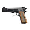Cal. 9mm Luger. S# 75C53518. Bbl. 4 5/8". The Browning Hi Power has been manufactured, commemorating John M. Browning's last pistol design since 1935 in numerous configurations. This particular example is a post War 9mm Parabellum w/ visible extractor & spur hammer. Serrated slide w/ fixed blade front sight & target adjustable rear. Left side controls including safety, slide lock & serrated thumb actuated mag. release. Checkered hardwood grips. Mag: 3 steel 13 rd. mags. UNATTACHED ACCESSORIES: plastic carry case. CONDITION: Blued finish on exposed metal surfaces enjoys complete coverage w/ only sporadic thinning typically resembling that earned by holstering. Wooden grip panels bear no obvious blemishing. Bright bore w/ strong rifling. Fire control mechanism appears to function correctly when cycled by hand. (22-1813/JZ). MODERN. $800-1,200.