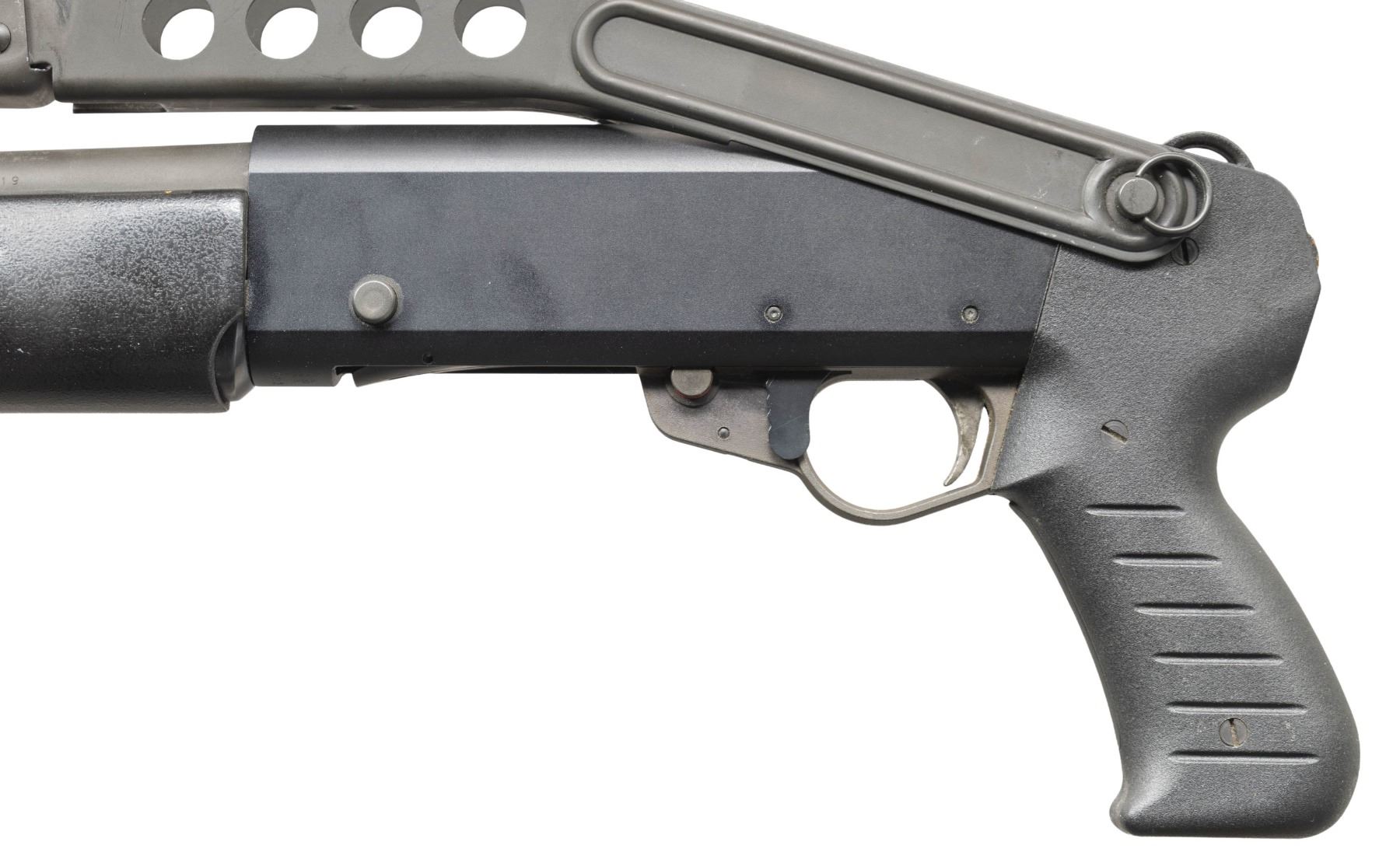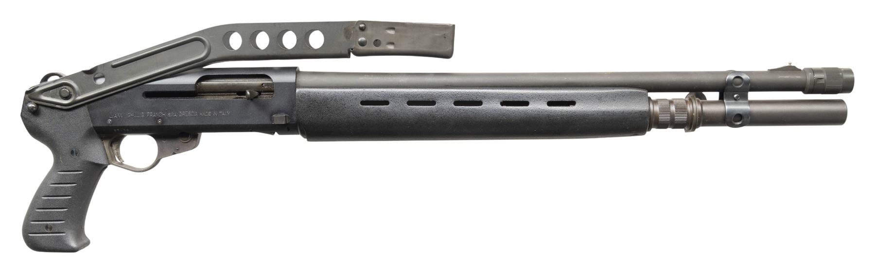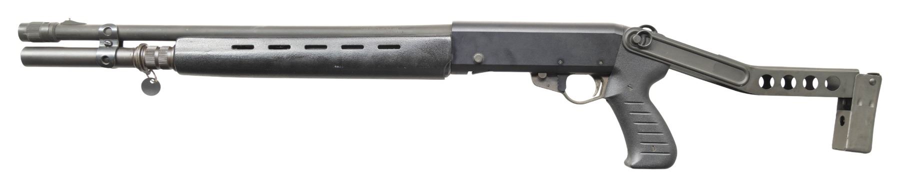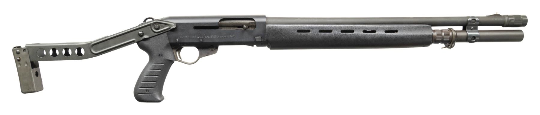 SHOTGUN. Cal. 12 Ga., 2 3/4". S# S78734. Mfg. 1987, imported 1988-94. Bbl. 21.5". 8 Shot tubular mag. Matte black finished gas operated system with bolt release also acting has loading lever release. Black synthetic stock set; replacement SPAS 12 style folding buttstock. CONDITION: very good metal & stock finish with light handling marks. Shiny bore. PROVENANCE: From the PMRB Collection. (25-5896/MD). MODERN. $500-800.