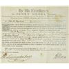 FROM 1768. This framed commission from Sir Henry Moore, Governor in Chief of New York, is to John Mynderse as a 2nd Lieutenant of a company of Militia Foot in a regiment based in Albany County, New York. The date of the commission is October 10, 1768. The commission is signed by Sir Henry Moore and Ph. Livingston Junr. The frame measures 18 1/2" x 14” and the commission measures approx. 14” x 9”. CONDITION: document has some foxing but is not faded and is quite easy to read. The handwriting is quite legible for the period. (02-19577/BF). $600-1,000.