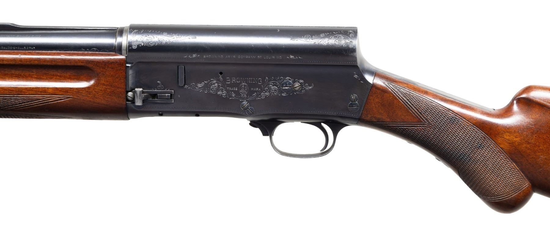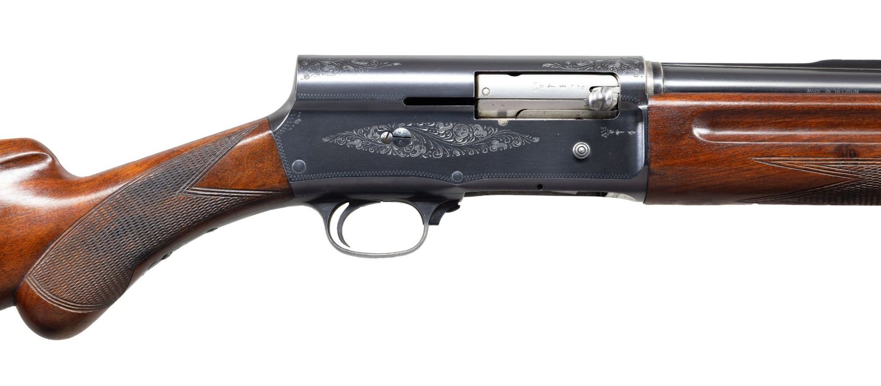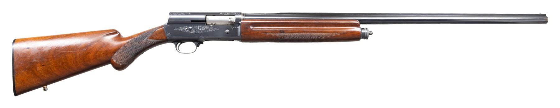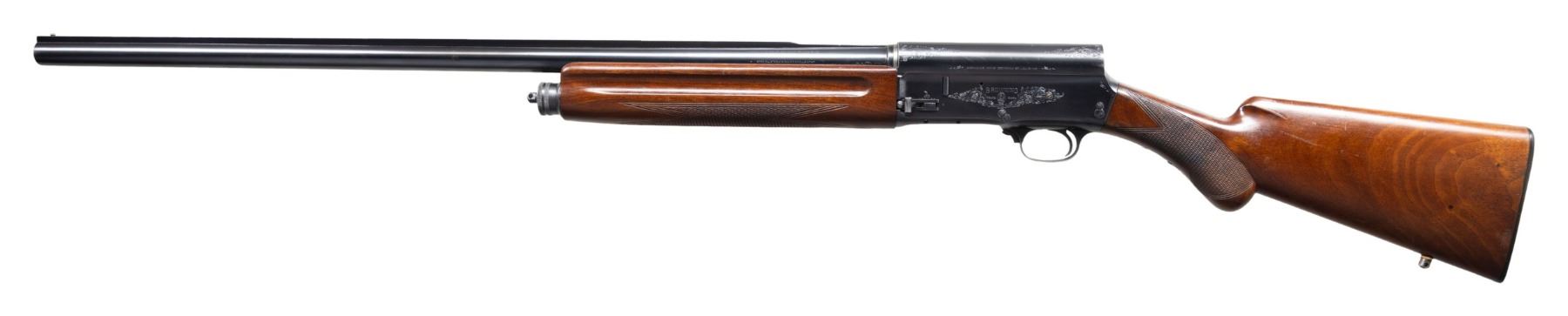 Cal. 16 Ga., 2 9/16". S# 120010. Mfg. 1939 in Belgium. Solid rib 27.5" barrel w/ steel bead & " * " marked choke. Grade I engraving on blued humpback recoil action. Checkered walnut stock set w/ finger groove forearm, round knob pistol grip & FN buttplate. Added sling stud to toeline & mag. cap. CONDITION: very good blue with light muzzle wear. & scattered pinprick patina. Good wood finish with areas of worn finish, areas of blistering finish on buttstock & crack on bottom of forearm. Very good shiny bore. (25-5139/MD). CURIO. $500-700.
