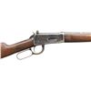 Cal. 30 WCF. S# 1200890. Bbl. 20". Model 94 lever action carbine mfg. by Winchester in 1940. Left side of the bbl. exhibits standard factory markings denoting the model and cal. designations. Metal components exhibit a blue finish overall. Nicely figured single band fastened plain wood forearm and straight grip buttstock. Buttplate is absent. Ramped, dovetailed, and aluminum beaded blade front sight, with empty rear sight dovetail, and receiver mounted Redfield adj. aperture rear sight. Upper receiver tang exhibits an added hole, likely for a previously mounted tang sight attachment. CONDITION: metal components retain fair to good amounts of their original factory blue finish, exhibiting areas of wear fading to gray patina, with scattered spots and patches of light to mild surface oxidation present overall. Very bright bore, exhibiting some light pitting, while retaining well defined rifling throughout. Proper manual mechanics. Wood furniture shows some scattered marks and impressions from handling and storage, but otherwise remains sound. (25-5302/MLW). CURIO. $500-800.