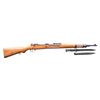 MILITARY RIFLE. Cal. 8x57 Mauser. S# B59363. Numbers match on the receiver, bbl., and trigger guard. Bbl. 23 3/4". This Standard Modell short rifle was produced after 1933, and it was used for police and security duty, as well as being sold worldwide. The receiver ring is marked with the Mauser banner and the left rail is marked "STANDARD-MODELL." Receiver ring also carries the "B G U N" proofs. Replacement bolt with straight bolt handle; bolt is marked underneath with a Weimar eagle. Tangent rear sight, graduated to 2000 meters; inverted V front sight. Bayonet bar is present. European walnut stock set; stock has grasping grooves and bottom swivels. H-type upper band has parade hook. UNATTACHED ACCESSORIES: 9 7/8" fullered blade bayonet. Bayonet is marked on the left ricasso "S/174", marked on the right ricasso "36C, and marked on top of the blade "37." Pommel has two "WAA235" marks. Matching steel scabbard carries markings identical to the bayonet. Bayonet has 60% of its original blue on the blade, with thinning and light wear; the balance of metal is turning gray in patina. Bayonet has been sharpened. Grips have light wear, staining, and several tiny cracks. Scabbard has traces of blue turning gray in patina. CONDITION: stock set has light wear with moderate scattered handling marks, with a notable filled knot in the cheek area. Metal retains a very large percentage of its arsenal-reworked blue finish, with light wear and scattered scratches. Near excellent, shiny bore. PROVENANCE: the Estate Collection of Charles Wagner. (24-4635/RW). CURIO. $800-1,200.