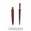 19.75" overall, 14" dagger point blade, 1.7" wide, .33" thick, hollow ground, sculptured heavy 3" brass cross guard, flattened octagonal rosewood handle with 2 round brass escutcheons, ribbed brass pommel & ferrule, original tooled brown leather sheath with belt loop. This impressive dagger pictured on full page of Johnston's "ACCOUTREMENTS V" on page 171. CONDITION: very good to fine overall, blade retains some luster with staining, small nicks in very sharp cutting edge near tip, handle is fine, missing round escutcheon on one side, sheath is fine with scuffing. PROVENANCE: James R. Johnston collection. (02-26002/JS). NON-GUN. $5,500-7,500.