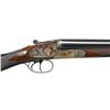Cal. 12 Ga 2-3/4’’. S# 0994. Bbls. 28-3/8’’ of Vickers Steel w/ concave solid rib. Case colored 7 pin sidelock action w/ gold finished lock parts. Choke markings are M&F. Double under lugs & third bite locking w/ cocking indicators. Selective ejectors. Double triggers, front trigger is hinged. Action has generous coverage of fine English style rose & scroll engraving. Splinter forearm & straight hand cheek piece stock of fine European walnut. Features include hand checkering, tear drop points & brass nameplate in toeline. Forearm has an inlaid brass Toschi crest. LOP: 14’’ to a checkered butt. DAC: 1-3/8’’. DAH: 1-15/16’’. Stock has a slight cast off. Bore diameter: RT .736, LT .736. Choke constriction: RT .024, LT .040. Minimum wall thickness: RT .023, LT .023. WEIGHT: 7 lbs. Bbl. date code indicates 1966 mfg. CONDITION: action retains 90% bright case colors. Bbl. has over 98% blue w/ bright near excellent bores. Original wood finish shows light wear w/ scattered scratches, marks & small dents. Action is tight & on face. (23-679/DS). CURIO. $3,500-5,000.
