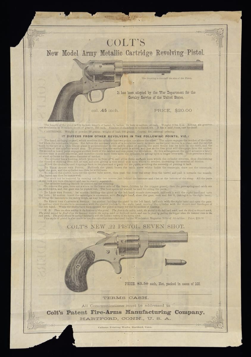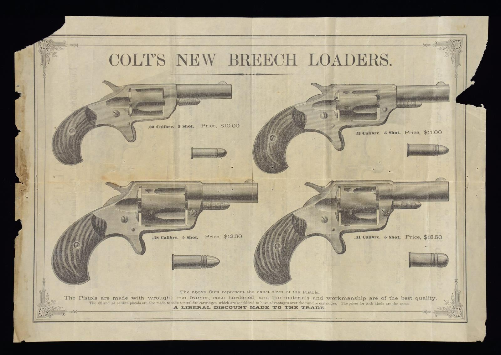 RARE CIRCA 1875 COLT ILLUSTRATED AD SHEET FOR