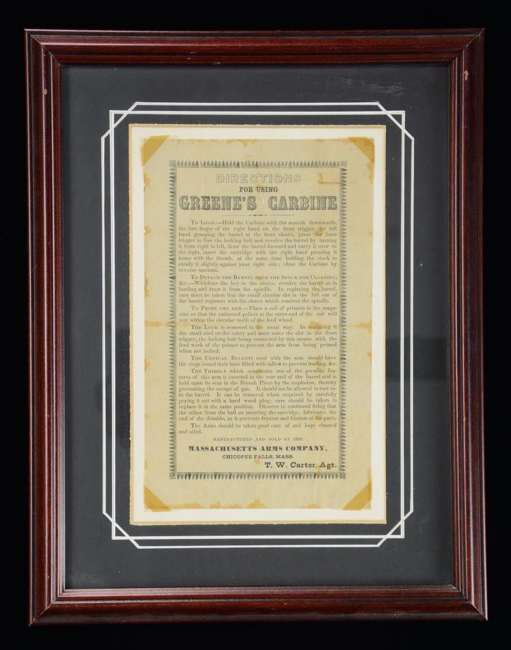 RARE CIVIL WAR ERA "GREENE'S CARBINE" DIRECTIONS.