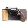 REVOLVER. Cal. 38 Spl. S# 359004. Bbl. 2" fitted w/ a King grooved top ventilated rib w/ reflector & brass bead patridge front sight. King white outline square notch adj. rear sight. King cock-eyed hammer w/ "Never-Slip" checkering. Sideplate has a unique gold-inlaid rampant colt by Orville Kuhl who was the engraver at King Gunsight. Stippled backstrap. Six shot fluted cyl. Blue finish. Wide configuration 2 piece checkered walnut grips. UNATTACHED ACCESSORIES: letter from the Colt Archive Properties, LLC detailing the following information, "Serial Number: 359004 / Caliber: .38/c / Barrel Length: 2" / Finish: Blue / Type of Stocks: Checkered wood / Special Notation: Wide grip configuration / Shipped To: Oklahoma City Hardware Company / Address: Oklahoma City, Oklahoma / Date of Shipment: April 16, 1928 / Date of Manufacture: March 31, 1928 / Colt Factory Order: # 14458 / 100 / Number of Same Type Guns in Shipment: 9". Also includes original 2 piece black box w/ matching serial number & label having the King Super Target label on the box top. Box contains King Super Target brochure, detective special brochure & special instructions. CONDITION: 97% blue showing slight muzzle & edge wear. Grips show light wear & marks. Crisp mechanics. Very good bright bore. PROVENANCE: From the lifelong Collection of Jim Williams. (24-2657/DS). CURIO. $4,000-6,000.