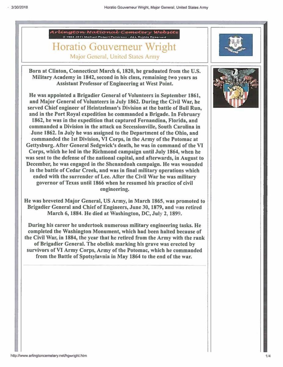 GENERAL HORATIO WRIGHT’S CHAPEAU, EPAULETS, SASH, & GAUNTLETS. General Horatio G. Wright (1820-1899) best known for his actions at Gettysburg and command of 6th Corps had long and distinguished military career. He graduated West point 2nd in his class 1842, built the Washington Monument, and is buried at Arlington National cemetery, The obelisk marking his grave was erected by survivors of VI Army Corps, Army of the Potomac, which he commanded from the Battle of Spotsylvania in May 1864 to the end of the war. From the Arlington cemetery website summarizing him in Civil War: “He was appointed a Brigadier General of Volunteers in September 1861, and Major General of Volunteers in July 1862. During the Civil War, he served Chief engineer of Heintzelman's Division at the battle of Bull Run, and in the Port Royal expedition he commanded a Brigade. In February 1862, he was in the expedition that captured Fernandina, Florida, and commanded a division in the attack on Secessionville, South Carolina in June 1862. In July he was assigned to the Department of the Ohio, and commanded the 1st Division, VI Corps, in the Army of the Potomac at Gettysburg. After General Sedgwick's death, he was in command of the VI Corps, which he led in the Richmond campaign until July 1864, when he was sent to the defense of the national capital, and afterwards, in August to December, he was engaged in the Shenandoah campaign. He was wounded in the battle of Cedar Creek and was in final military operations which ended with the surrender of Lee. After the Civil War he was military governor of Texas until 1866 when he resumed his practice of civil engineering.” 1. Regulation general’s buff sash, 104” long plus knots, good overall with 2 large dark stains