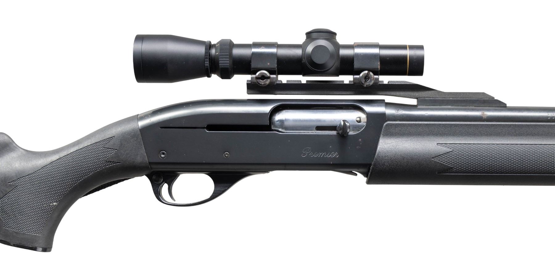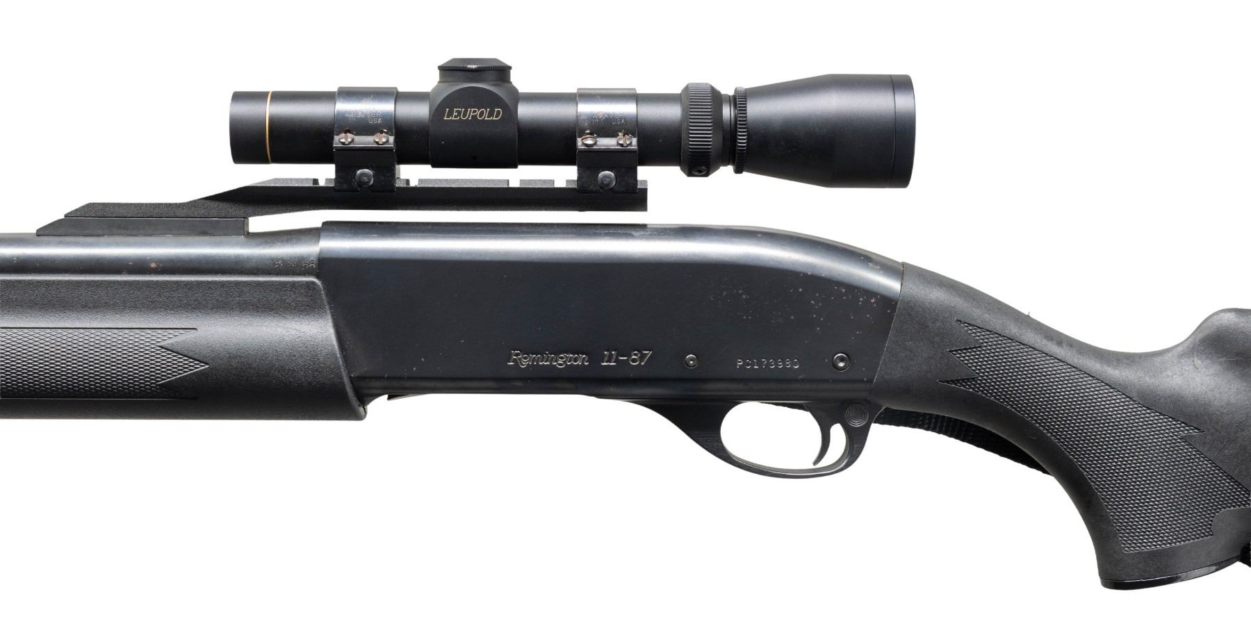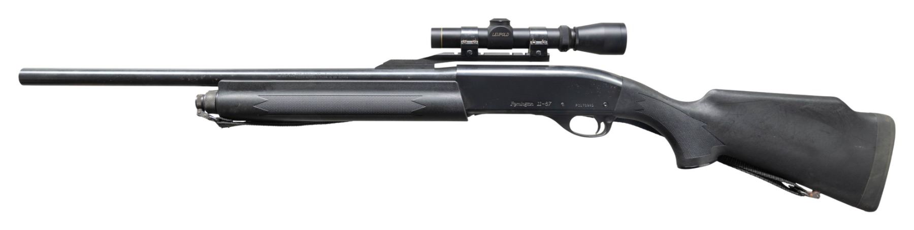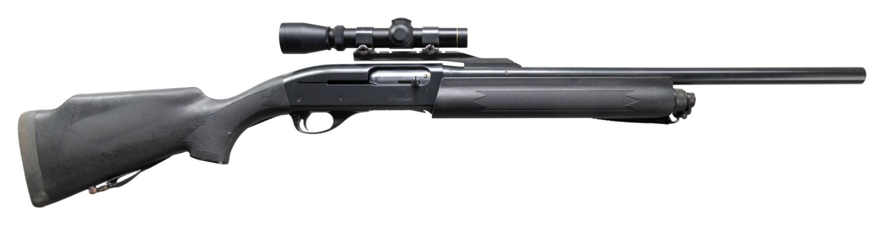 SHOTGUN. Cal. 12ga., 2 3/4" & 3". S# PC173980. The rifled 21" bbl. has a cantalever holding a Leupold VARI-X IIx Shotgun 1-4x20 scope. Blued finish. Black synthetic stock set w/ black nylon sling. CONDITION: good blue with several spots & 1 large area of oxidation throughout. Very good stock set. Very good bore. (25-3708/MD). MODERN. $300-400.