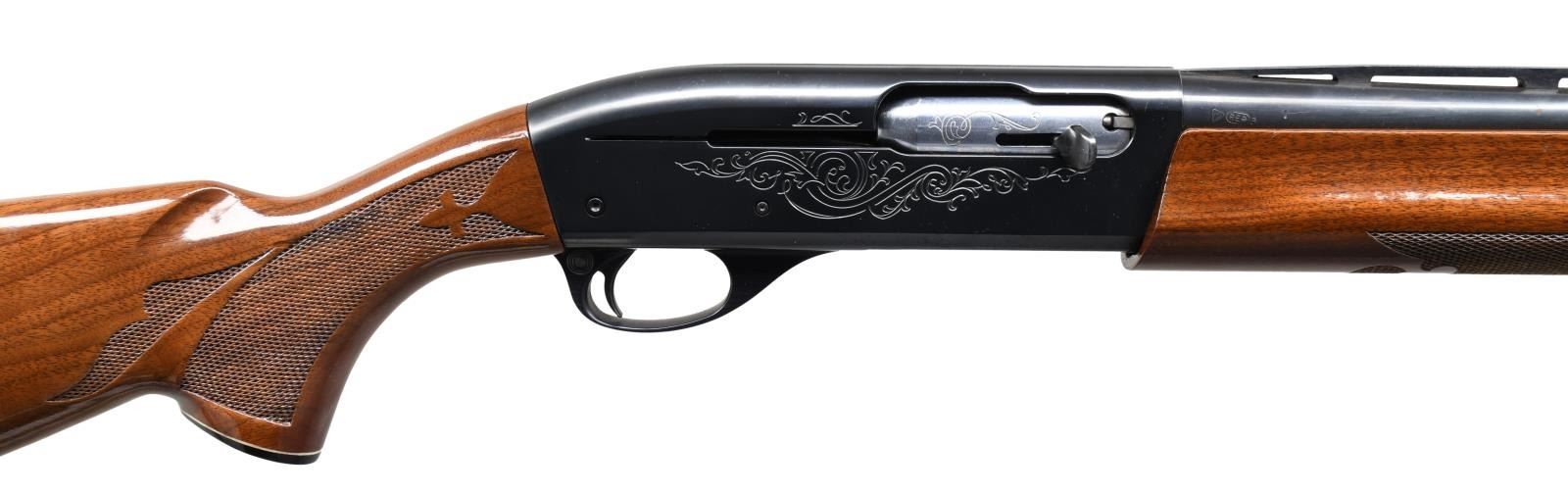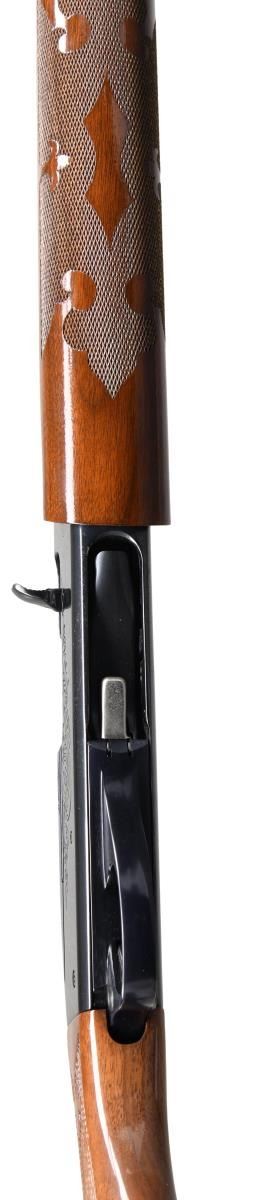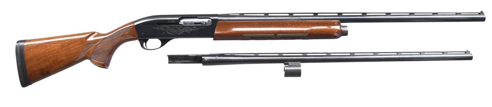 Cal. 20 ga. 2 3/4". S# M884198K. Bbl. 1: 25 1/2" vent rib with Remchoke. Mod tubes are included. Bbl. 2: 25 1/2" vent rib with fixed skeet choke. Both bbls. have white target front sights with steel mid-beams. Action has scroll ornamentation. Forearm and pistol grip stock with gloss finish and pressed checkering. LOP: 13" over aftermarket decelerator pad and 1/4" of spacers. CONDITION: 98% blue. Wood shows scattered scratches, marks, and small dents. Both bbls. have very good bores. (23-5455/DS). MODERN. $600-900.