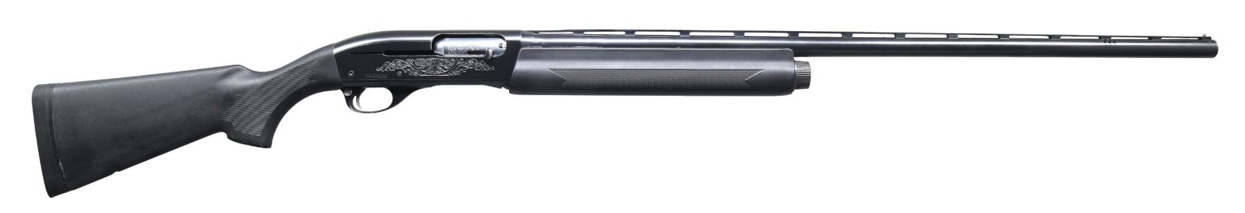 Cal. 12 ga. 3" Magnum. S# N128917M. Bbl. 30" vent rib w/ aftermarket porting. Fixed full choke. Steel front bead. Aftermarket replacement black synthetic forearm & pistol grip stock. LOP: 13 7/8" over a solid black pad. CONDITION: 80% blue showing carry wear & scratches. Stocks have very good finish. Good bright bore. (24-3111/DS). MODERN. $400-600.