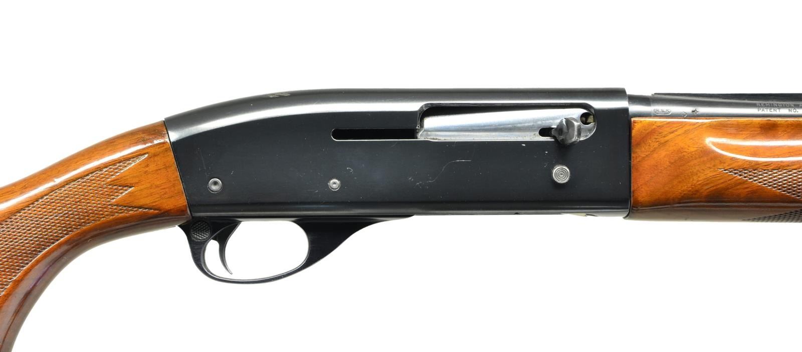 Cal. 410. S# 4149813. Bbl. 25". Mfg. 1954-1968. Blued steel. Vent rib skeet barrel w/ white front & silver mid beads. Recoil operated self loading action. Checkered walnut forend & stock w/ black grip cap & rubber recoil pad. Cross slide safety behind trigger. 15" LOP. CONDITION: Blued finish enjoys complete & consistent finish w/ gentle thinning on right side of barrel & some light scratching on receiver. Wood furniture has a few impressions primarily on stock. Front bead missing from socket but base is intact. Bright shiny bore.(23-61/JZ). CURIO. $1,000-1,500.