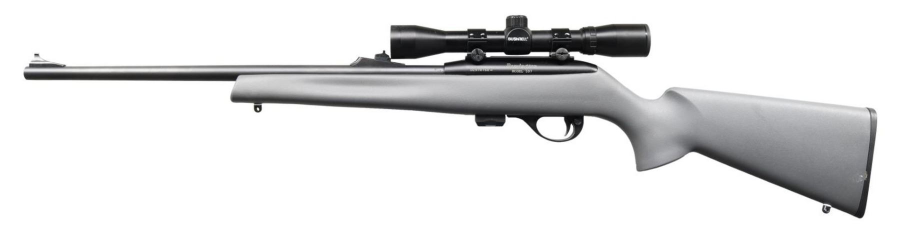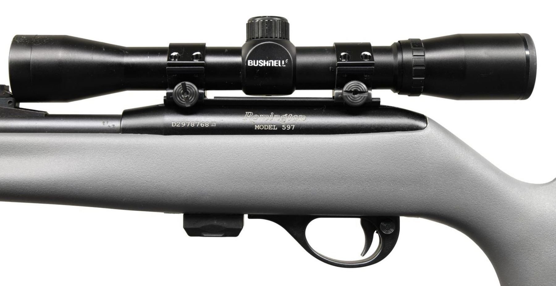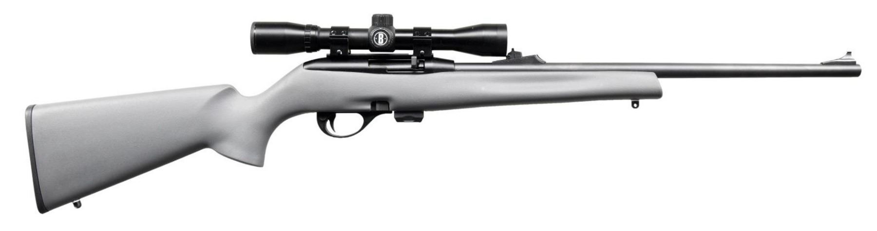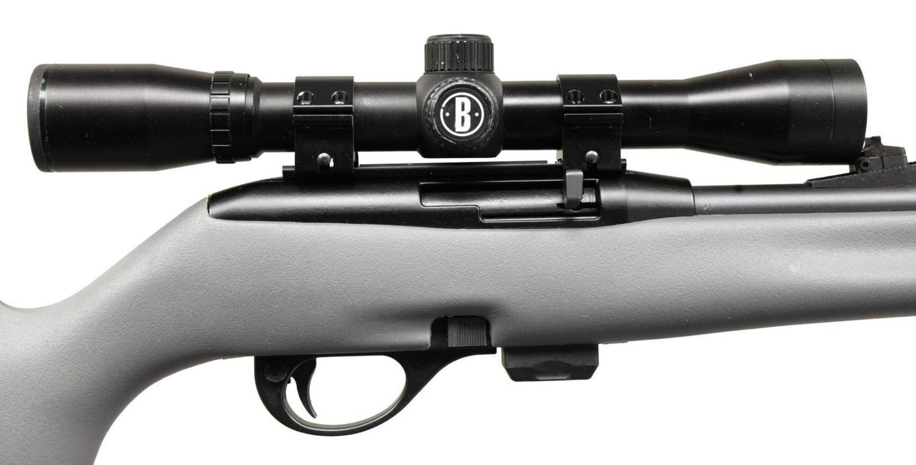 Cal. 22 LR. S# D2978768. Bbl. 20". Ramped white bead front sight. Ramped open rear sight. Receiver mounted Bushnell 4x power scope w/ duplex crosshair reticle & very good optics. Light green synthetic stock w/ bottom mounted sling studs. MAGS: 1-10 rd. CONDITION: all aspects rate very good+ or better. (23-2368/MJC). MODERN. $175-250.