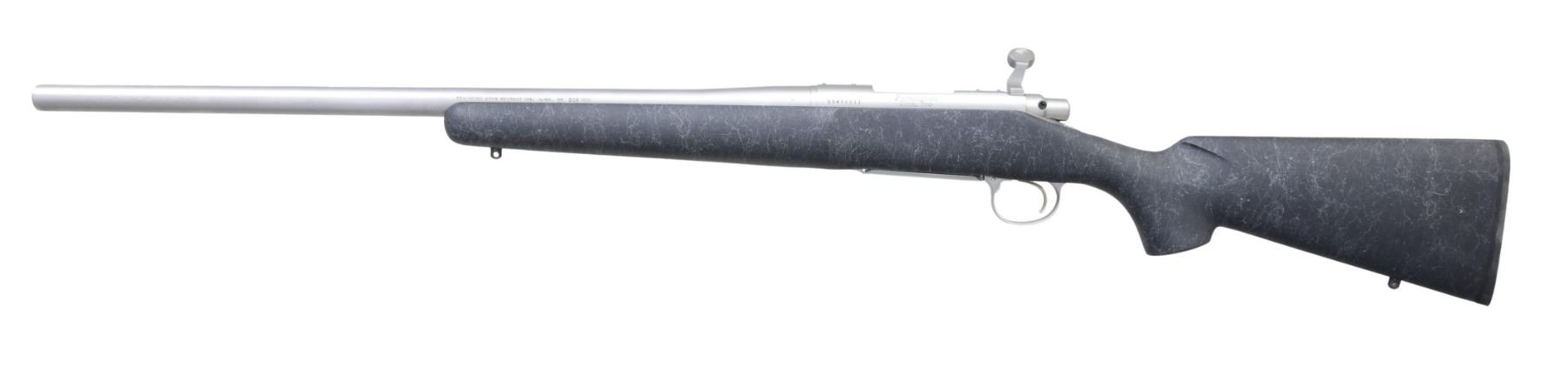 Cal. 308 Win. S# S6494911. Bbl. 24" with 5R rifling. Rifle lacks sights but is factory drilled and tapped for scope mounting. Stainless finish. Gray synthetic stock with bottom-mounted sling studs and factory recoil pad. LOP: 13 1/2". UNATTACHED ACCESSORIES: matching numbered factory box with manual. CONDITION: all aspects are near excellent, with some light storage wear. (24-4998/MJC). MODERN. $800-1,200.