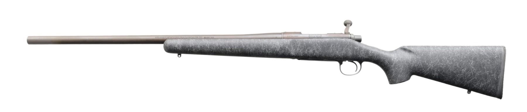 Cal. 22-250. S# C6751360. Bbl. 24", heavy profile. No sights present, but the receiver is factory drilled and tapped for scope mounting. Phosphate finish. Gray synthetic stock with bottom-mounted sling studs and factory butt pad. LOP: 13 1/2". UNATTACHED ACCESSORIES: matching-numbered factory box with manual. CONDITION: all aspects are near excellent. (24-4997/MJC). MODERN. $700-1,000.