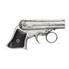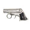 Cal. 22 Short. S# 2303. Bbl. 3" five-shot, fluted cluster. Bead sight. Action features a ring-type trigger & revolving firing pin. Bbl. group tilts forward for loading. Full nickel finish. Two-piece rosewood grips. CONDITION: 60% nickel finish, showing spotted corrosion and light pitting. Grips show light wear & marks. Sound action. Dark, pitted bore. PROVENANCE: From the lifelong collection of Jerry Senter. (01-24883/DS). ANTIQUE. $400-600.