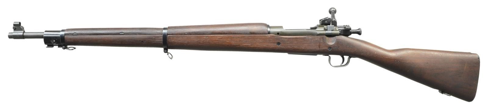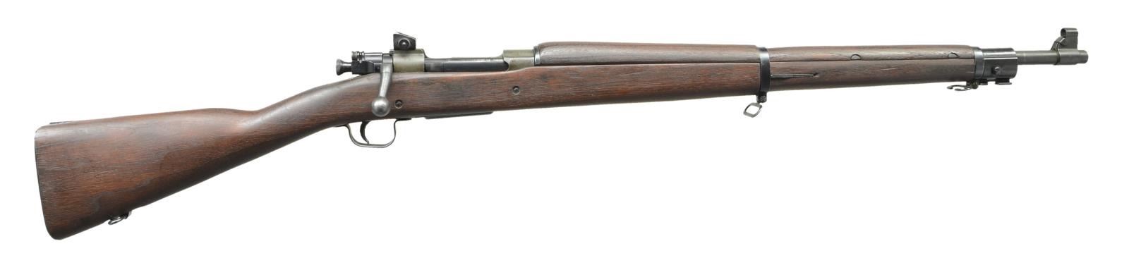 Cal. 30-06. S# 4112883. Bbl. 24" by Remington dated 9-43 corresponding to same receiver mfg. date; front sight protector installed. Walnut stock set w/ left side cartouche of “FJA” plus “RA” (Remington Arms) & “OG” (Ogden Arsenal post WWII check, test & rework mark) stamps. Correct 7/16" circled “P” proof behind trigger guard, along w/ “H”. 4 Various small proofs in front of floorplate. Parkerized action & bbl. w/ blued balance of metal parts. Remington marked bolt root & shroud. CONDITION: very good plus overall appearance w/ occasional sm. handling mark on stock. Handguard w/ slightly darker appearance & more open grain. Light function wear on bolt. Near excellent bore. (22-1473/NW). CURIO. $650-900.