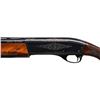 AUTOLOADING SHOTGUN. Cal. 12 Ga. S# L-648821M. Bbl. 25 1/2" VR Target Contour of later mfg. Bbl. fitted for Remchokes, includes Skeet, Imp-Cyl & Mod. stainless steel extended target tubes. White target front sight w/ steel mid bead. Breech end of bbl. has added scroll engraving that compliments the factory engraved action. Blued action has D grade factory engraving featuring wedges of scroll on sides, top & trigger guard bow highlighted by wavy line & dotted borders. Forearm & gloss finished pistol grip stock of fancy walnut have elaborate hand checkering. Stock features black grip cap w/ white diamond inlay & white line spacer. LOP: 14" over Pachmayr Presentation pad w/ white line spacer. CONDITION: action retains over 95% blue showing light scratches w/ some carry wear around loading port. Bbl. retains 99% blue. Original wood finish shows scattered scratches & marks w/ chipped finish along rear edge of forearm. Very nice bright bore. (20-120/DS). MODERN. $2,000-2,750.