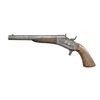 Cal. 50 RF. S# 8. Bbl. 8 1/2" with pinched front sight blade and anchor over chamber. Mfg. 1866-1870; approx. 6,500 units by revised research. Earliest model with spur trigger and bottom center extractor nub. Underside of barrel (under forend), forend, checkered grip and left side of top tang numbered 8. CONDITION: fair patina appearance with cleaned surfaces. Handling marks on wood plus dents on butt of grip; chip at top left front of forend. Too long replacement firing pin retained by replacement pin rather than screw. Bottom front grip screw is replacement flat head wood screw. Poor to fair bore with wear, pitting and traces of rifling. (01-22124/NW). ANTIQUE. $300-500.