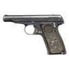 Cal. 32 ACP. S# PA66312. Bbl. 3 1/2". Short blade front sight. Low profile square notch rear sight. Second variant with 15 slide serrations & Remington logo on right side of frame. Grip safety appears to be missing a screw. Blued finish. Checkered Rubber grips with with Remington UMC logos & several added holes some that have jewel decorations. MAGS: none present. CONDITION: grips show scattered handling marks & staining. Metal retains 60% original blue with scattered edge wear, fading to gray, oxidation & pitting. Grip safety sluggish & unable to test action properly due to missing mag. Bore shows scattered oxidation but strong rifling. PROVENANCE: Estate of Groves Herrick. (25-5687/MJC). CURIO. $300-400.