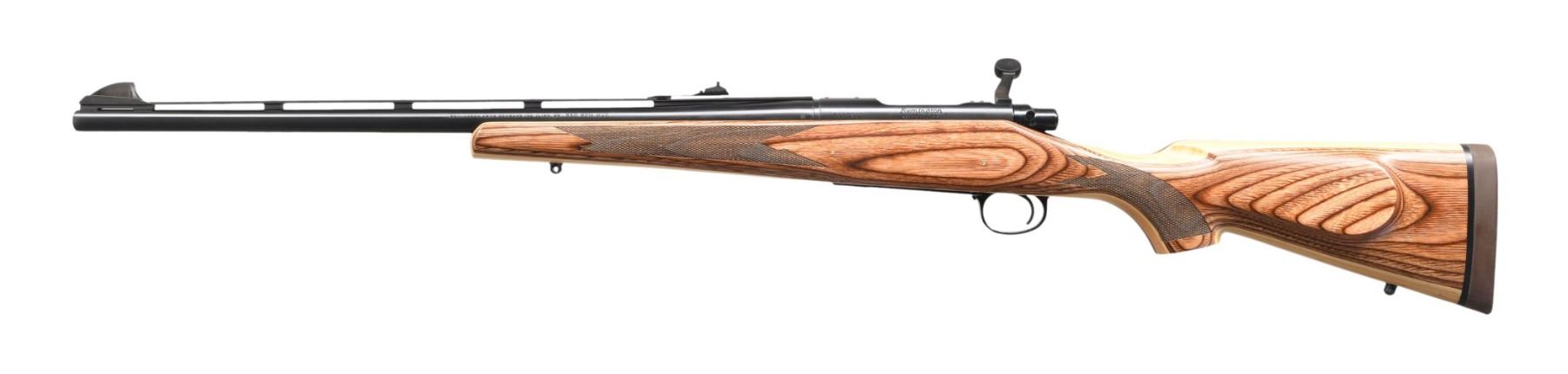 Cal. 350 Rem Mag. S# 7787603. Bbl. 22" with VR. Blade front sight with white bead. Sporting style rear sight. Receiver is factory drilled & tapped for scope mounting. Blued finish. Laminated stock with left side cheekpiece, bottom mounted sling studs & factory recoil pad. LOP: 13 1/2". UNATTACHED ACCESSORIES: matching numbered factory box with manual. CONDITION: all aspects near excellent. (24-3424/MJC). MODERN. $800-1200.