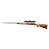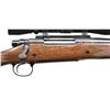 Cal. 338 Rem Ultra Mag. S# E6641358. Bbl. 26" w/ sights removed. Engraved 2 lug action w/ jeweled bolt body, 2 position safety & engraved floorplate. Leupold Vari-X IIc 2-7x32 gloss finished scope w/ duplex reticle on 1 piece Leupold mount. Monte Carlo cheekpiece walnut stock w/ skipline cut checkering, swivel bases, solid black pad, black forearm tip & grip cap having white line spacers. UNATTACHED ACCESSORIES: original box containing instruction packet & original sights. CONDITION: 98% blue. Stock shows a few small marks. Bright excellent bore. Scope has bright optics. (24-4211/DS). MODERN. $800-1,200.