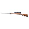 Cal. 375 Rem Ultra Mag. S# G6241491. Bbl. 26" w/ sights removed. Leupold VX-1 2-7x33 matte finished scope w/ duplex crosshair on 1 piece mount. 2 lug action w/ jeweled bolt body & 2 piece safety. Monte Carlo cheekpiece walnut stock w/ skipline hand checkering. Plastic forearm tip & grip cap w/ white line spacers & solid black Remington pad. Hunter leather sling on QD swivels. CONDITION: 98% blue. Stock finish shows a few small scratches. Bright near excellent bore. Scope has clear optics. (24-4278/DS). MODERN. $1,000-1,300.