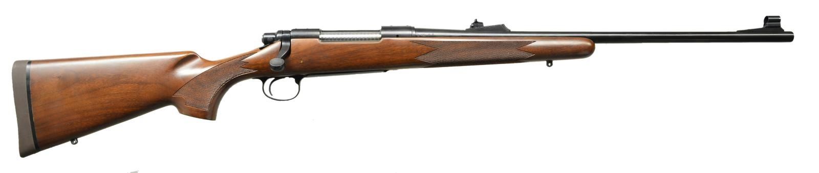 Cal. 35 Whelen. S# C6271391. Bbl. 22" with hooded ramp mounted bead front sight & ramp mounted adjustable rear sight. Checkered walnut stock with brown "REMINGTON" hard rubber recoil pad, hinged floorplate & sling studs. CONDITION: near excellent wood & metal finish showing only a few minor marks. Very good bore. (22-6273/BH). MODERN. $600-900.