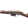 Cal. 35 Rem. S# 36615. Bbl. 22". Model 8 semi-automatic rifle mfg. by Remington. Top of the bbl. is marked with Remington 2-line mfg. and patent information, with "FY 3" and "KS 3" date codes marked on the left at the breech. Metal components exhibit a blue finish overall, save for on the bolt assembly and bbl., which are polished in-the-white. Plain wood schnabel tip forearm and straight grip buttstock with Remington UMC checkered brown hard rubber buttplate. Aftermarket Lyman natural white beaded blade front sight with Marbles flip-up U-notch rear sight, and Marbles flip-up tang sight. CONDITION: metal components retain fair to good amounts of their original factory blue finish, exhibiting areas of wear fading to gray patina, scattered handling marks, as well as scattered spots / areas of light surface oxidation overall. Bright bore, exhibiting consistent light pitting, while retaining well defined rifling throughout. Proper manual mechanics. Wood furniture shows scattered marks and impressions from handling and storage, with the buttstock exhibiting an approx. 1 1/2" crack on the right side, stemming from the receiver tang. (25-5712/MLW). CURIO. $300-500.