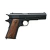 Cal. 45 ACP. S# 5026. Bbl. 5". Mfg. 1918 as first part of Army contract; completed in 1918. Appropriately stamped "E" on left front of trigger guard & rear of slide. Correct safety tab checkered w/out milling cut. Blued checkered slide stop w/out milling cut. Right front of trigger guard w/ assembler # 42. Original dbl. diamond walnut grips w/ carving on lower left diamond appearing to be "AT". Correct Type 16 Remington " UMC bbl. "E28" under eagle head proof; early variation had "E1". Smooth semi circular front sight & U notch rear. MAGS: 1 correct good 2 tone 7 rd. w/ short base lip & early feed lip w/out detent; scattered peppery oxidation. CONDITION: good plus black refinished appearance of Cerakote or similar appearing process. All components finished except worn grip screws & blued slide stop. Fair to good worn grips; fair bore w/ wear & light to moderate pitting. Overly light trigger pull allows hammer to follow slide. (19-5980/NW). CURIO. $1,000-1,500.