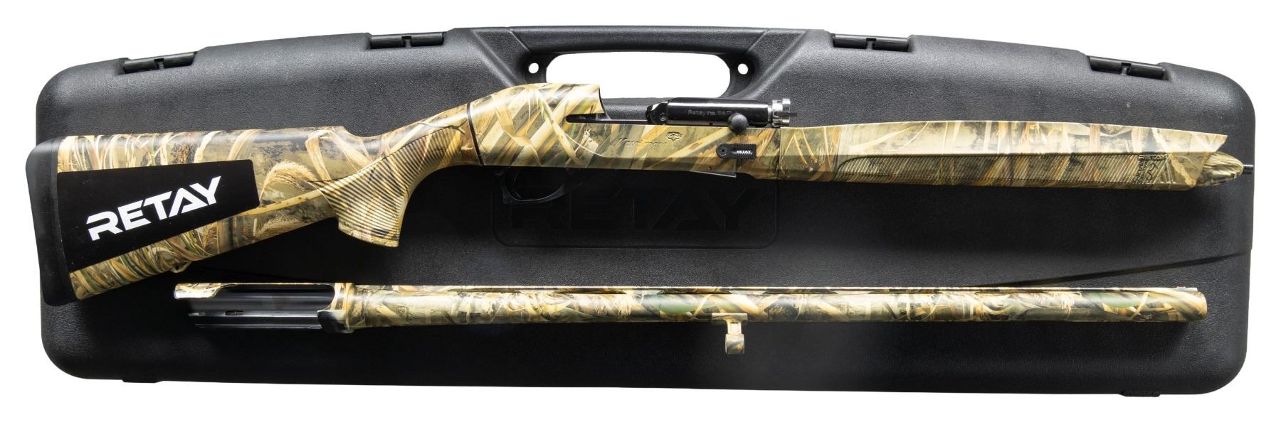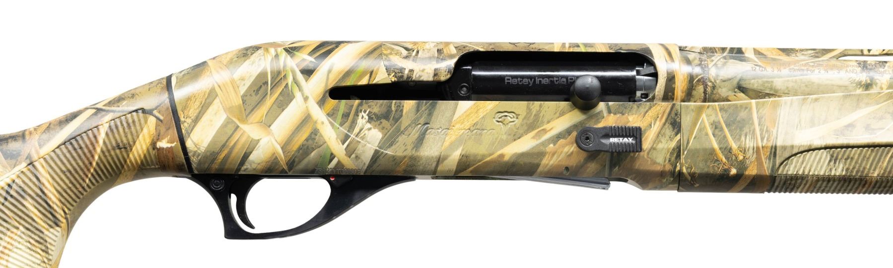 1) RETAY MASAI MARA. Cal. 12 3 1/2". S# 73H22YT000806. Bbl. 26" with VR. Fiber optic front sight. Metal & stock set have RealTree Max5 camoflauge finish. Synthetic pistol grip stock & forend with bottom mounted sling studs & factory recoil pad. LOP:14 1/4". UNATTACHED ACCESSORIES: matching numbered factory hardcase with manual, oil bottle, sling swivels, choke wrench, modified choke, full choke, cyl. choke & improved cyl. choke. CONDITION: all aspects near excellent. (24-3331/MJC). 2) STOEGER M3020 MAX 5. Cal. 20 Ga. 3". S# 1441616. Bbl. 28" with VR. Fiber optic front sight. RealTree Max-5 camoflauge finish on metal & furniture. Pistol grip synthetic stock set with bottom mounted sling studs & factory recoil pad. LOP: 14 1/4". UNATTACHED ACCESSORIES: matching numbered factory box with choke wrench, modified choke & an extended choke tube. CONDITION: all aspects near excellent. (24-3523/MJC). ALL MODERN. $600-1,000.